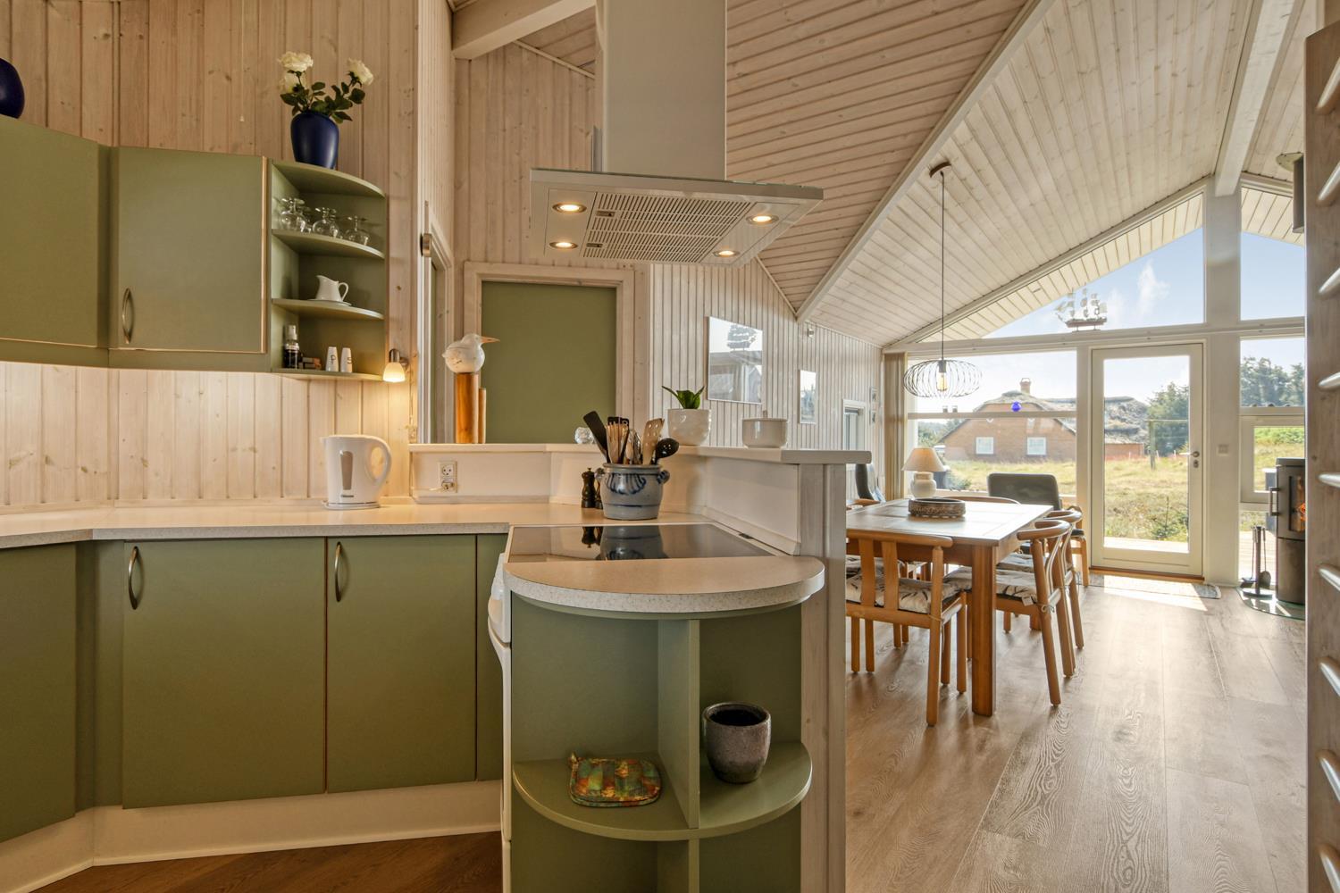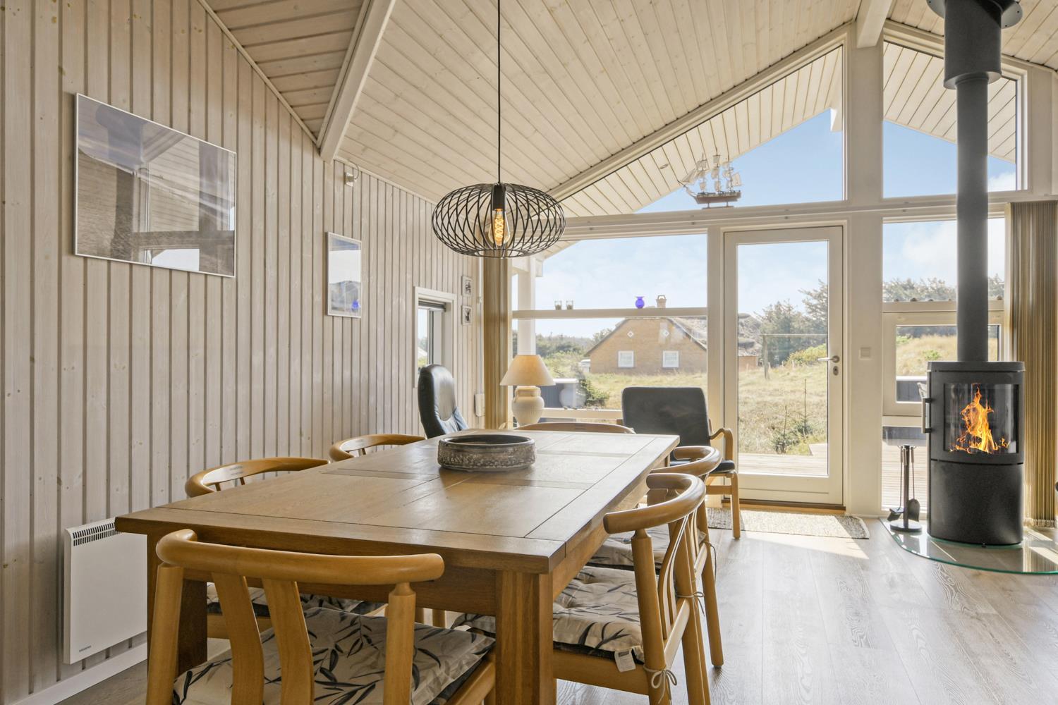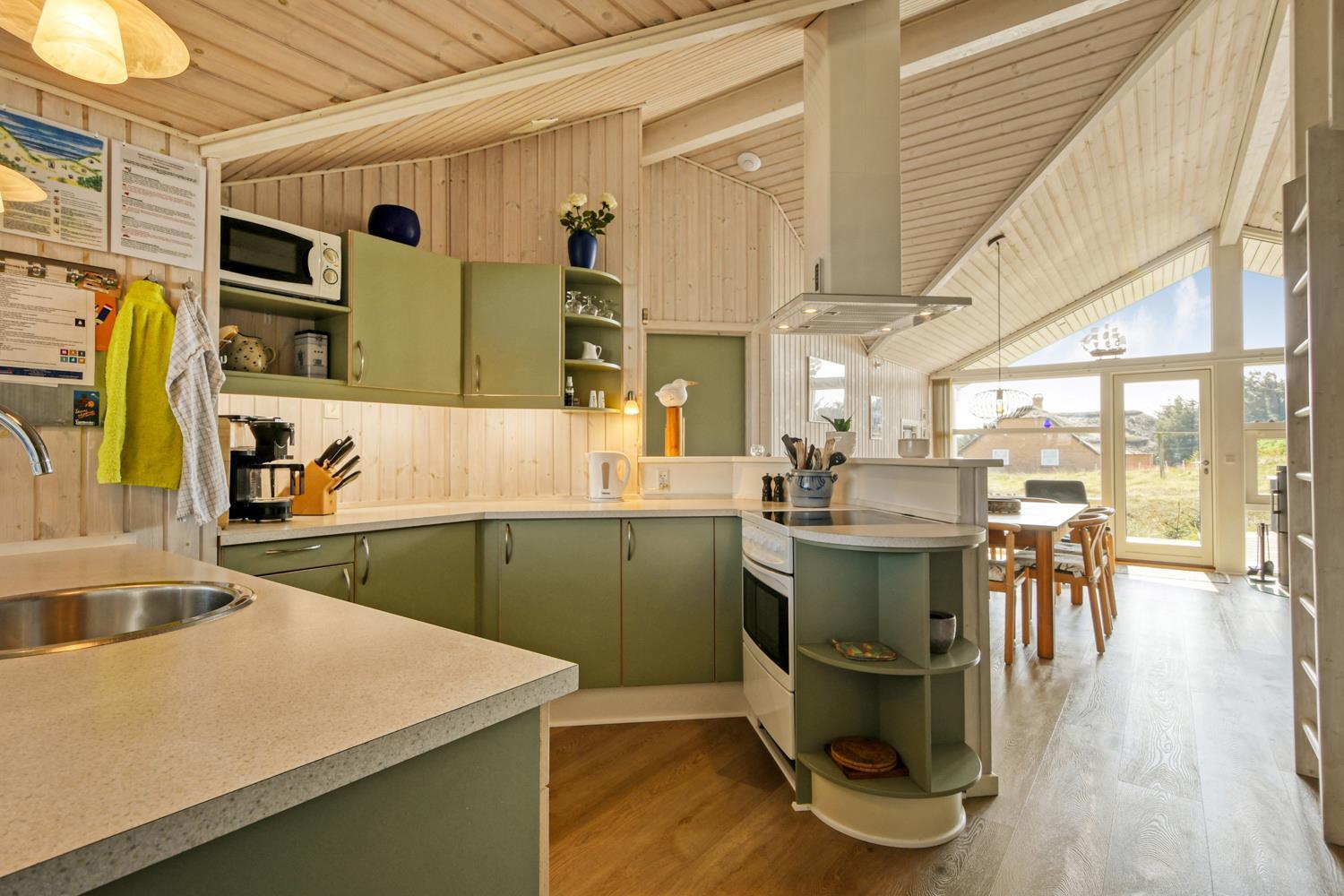 Schönes Ferienhaus in einem sehr attraktiven Dünengebiet auf einem 1.200 qm großen Dünengrundstück gelegen, bloß 250 m von einem der besten Strände und auch bloß 500 m vom Supermarkt, der in der Saison geöffnet hat, entfernt. Vom Wohnraum gibt es einen Ausgang zu einer teilweise überdachten und eingezäunten Terrasse mit Gartenmöbeln, 3 Sonnenliegen, Sonnenschirm und kleinem Gasgrill (die Gasflache hierfür muss man selber mitbringen). Für die kleinsten Gäste gibt es eine Schaukel. Genießen Sie, dass Sie die Nordsee fußläufig erreichen können. Von der Terrasse haben Sie einen sehr schönen Blick über das Gebiet und die hohen Dünen an der Nordsee. Mit dem Auto ist es bloß eine kurze Fahrt nach Thyborøn oder Lemvig. Beide Orte bieten die Möglichkeit, frischen Fisch zu kaufen. Ein schönes Haus für 6 Personen, die gerne in ruhiger Umgebung dicht an der Nordsee wohnen möchten.