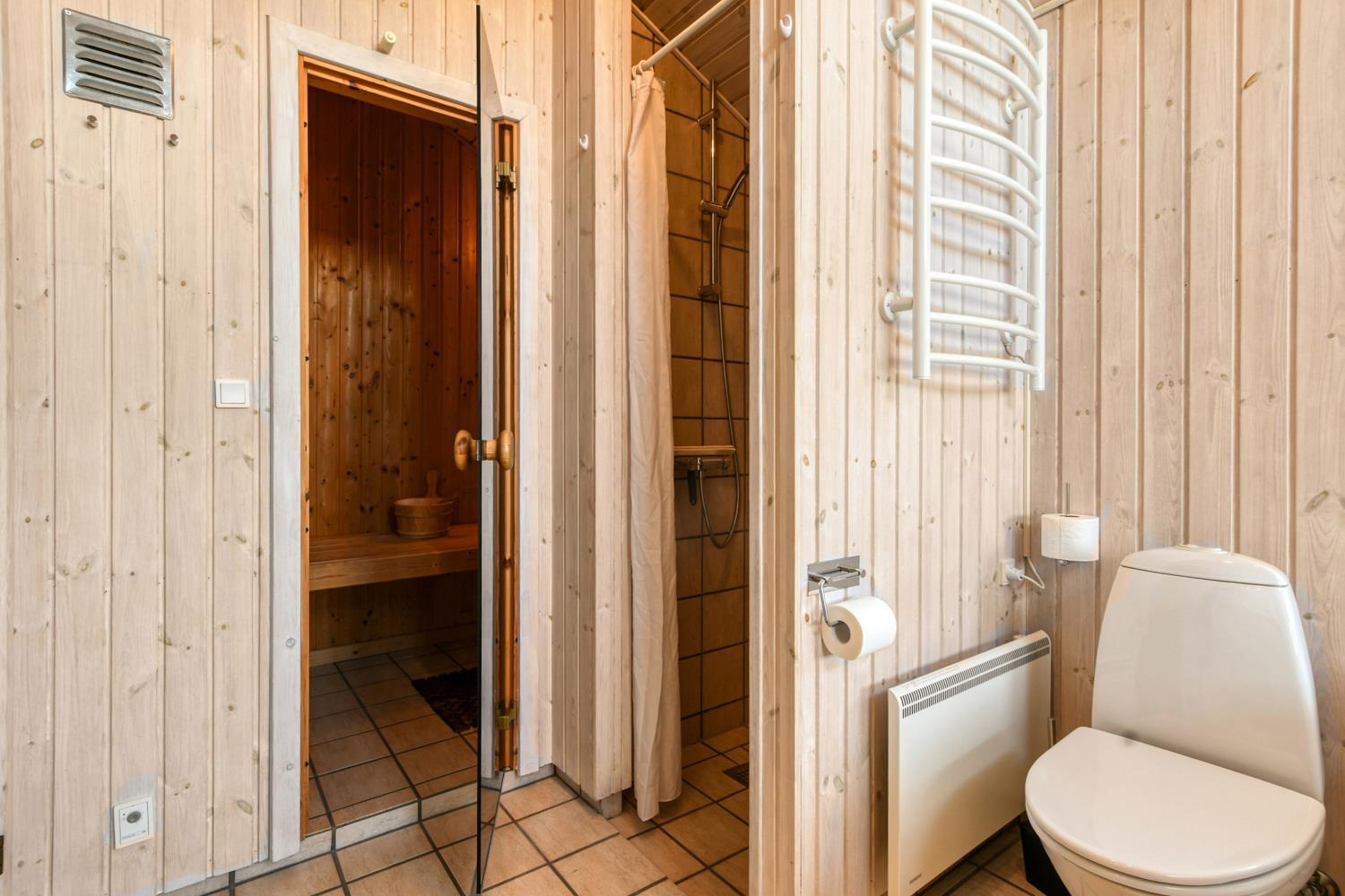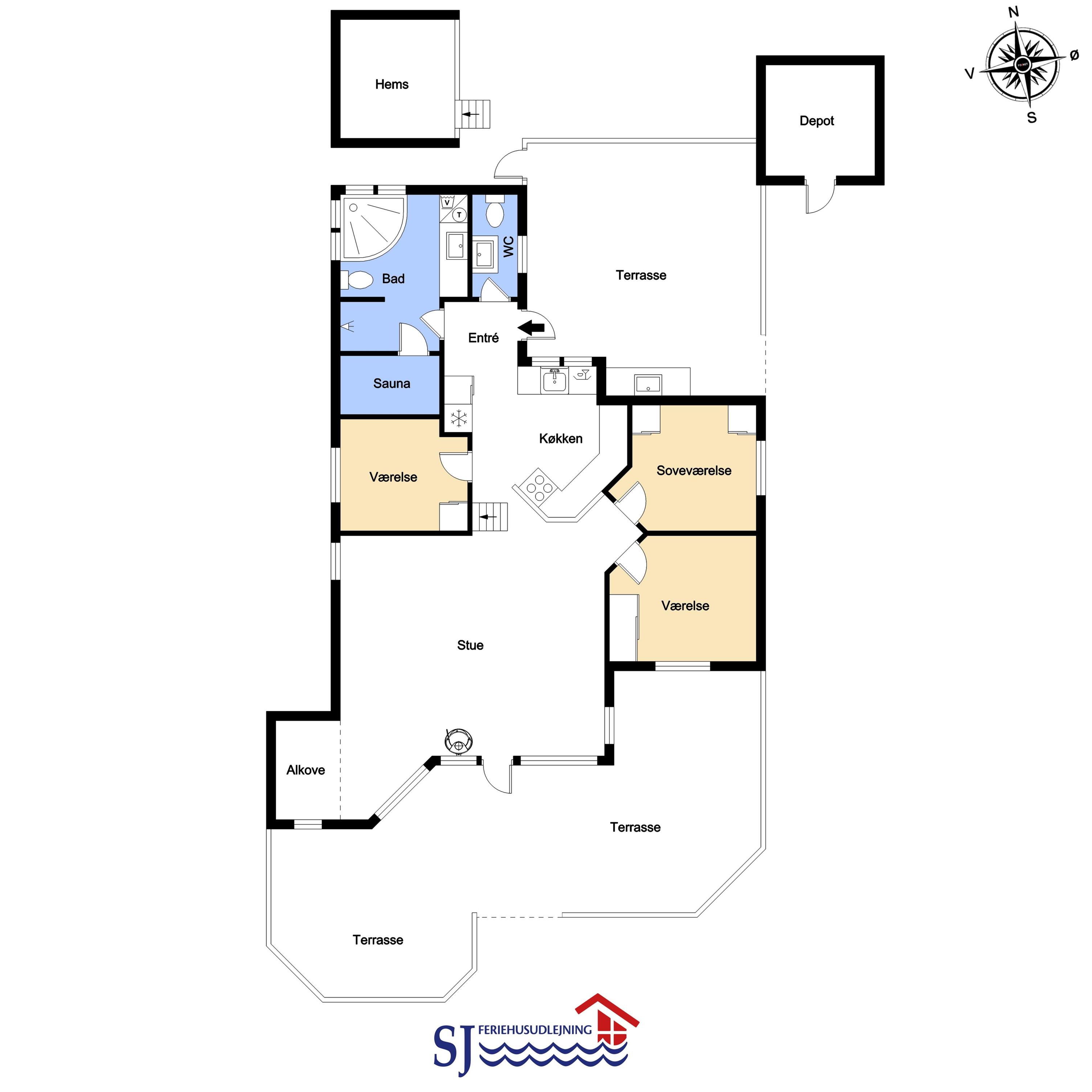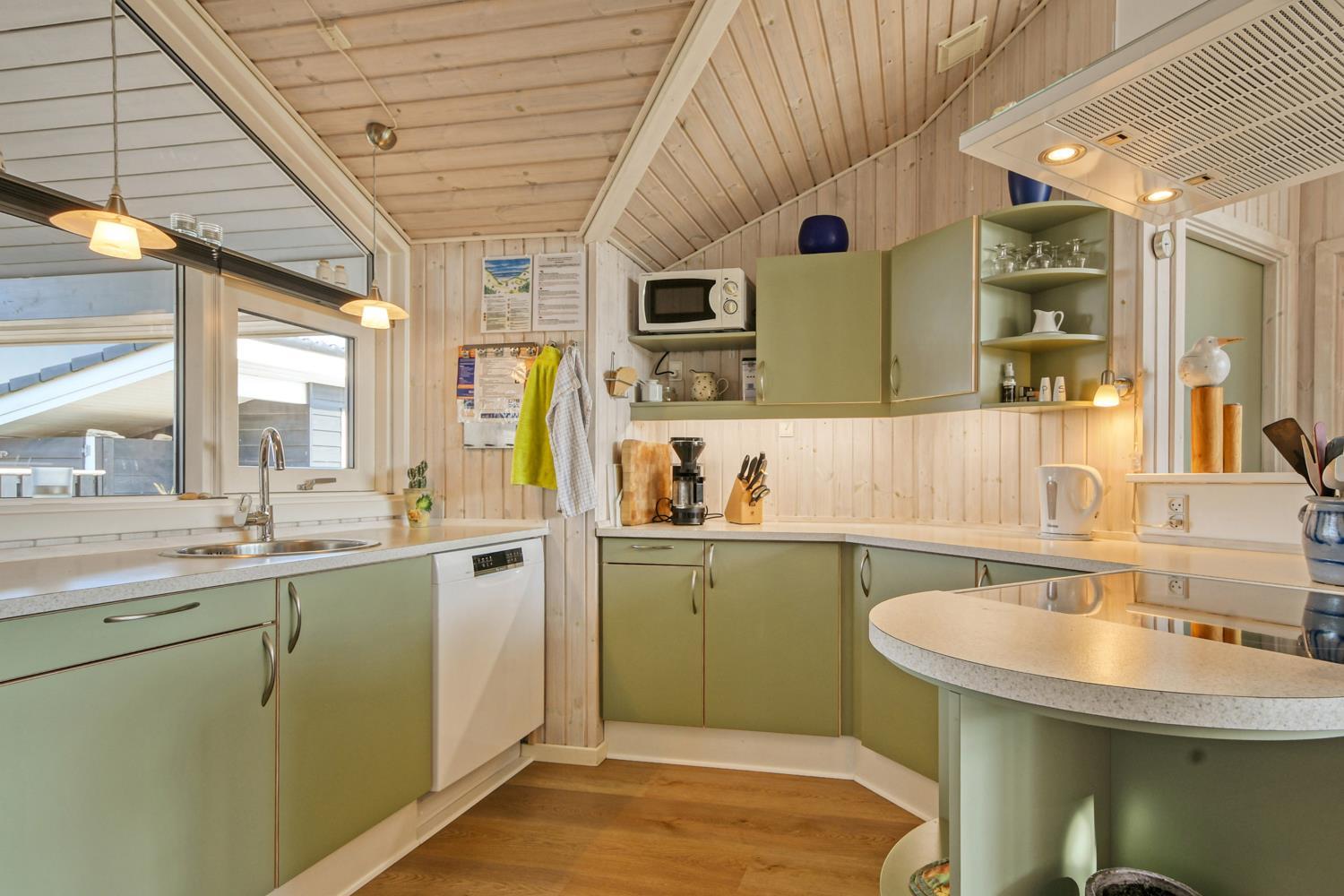 Dieses gepflegte Ferienhaus mit 92 qm ist gut isoliert; außerdem gibt es Brennofen und Wärmepumpe, die beide dabei helfen, den Wärmeverbrauch zu reduzieren. Im Wohnraum gibt es eine große Fensterpartie, die für einen guten Lichteinfall im ganzem Raum sorgt. Es gibt neuen Laminatboden im ganzen Haus. 3 Schlafräume: 1DB + 1DB + 1B. Im Wohnraum gibt es noch einen Alkoven mit 2 Schlafplätzen. In einem der Schlafräume gibt es TV und DVD-Spieler. Auf dem offenen Schlafboden gibt es 2 Schlafmöglichkeiten - die Leiter zum Schlafboden ist sehr steil -. Gemütlich eingerichteter Wohnraum mit Kaminofen, TV mit dänischen und deutschen Programmen. Schöne Küche mit Ceranfeld-Herd, Kühl-/Gefrierschrank, Geschirrspüler, Mikrowelle und Abzugshaube. Badezimmer mit Toilette, Waschbecken, Dusche, Whirlpool und Zugang zur Sauna, Fußbodenheizung. Hier gibt es auch die Waschmaschine und den Trockner. Gäste-WC: Toilette und Waschbecken. Für die kleinsten Gäste gibt es eine Babybadewanne, Kinderbett und Kinderstuhl. Nichtraucher-Haus. Haustiere sind nicht erlaubt. Obligatorische Endreinigung.