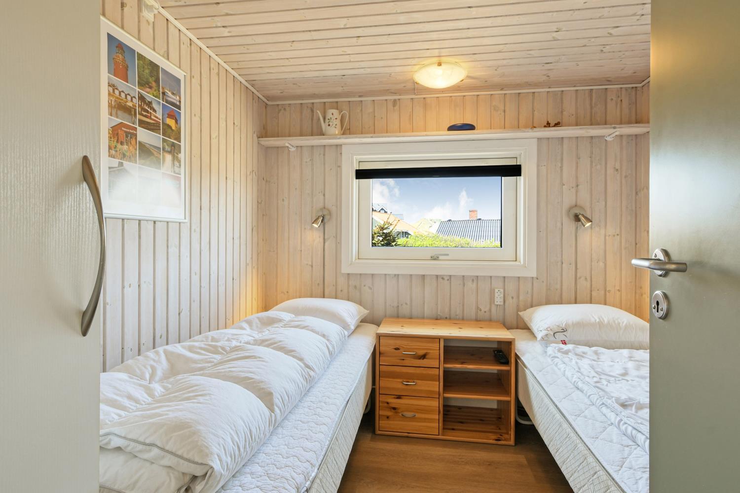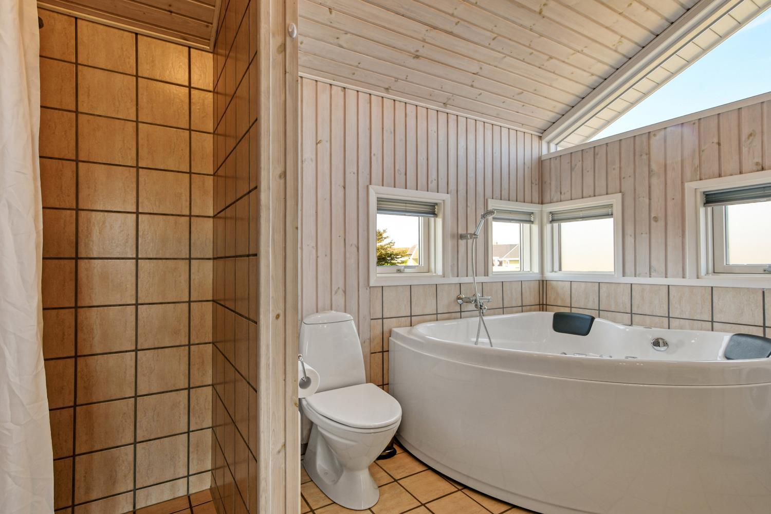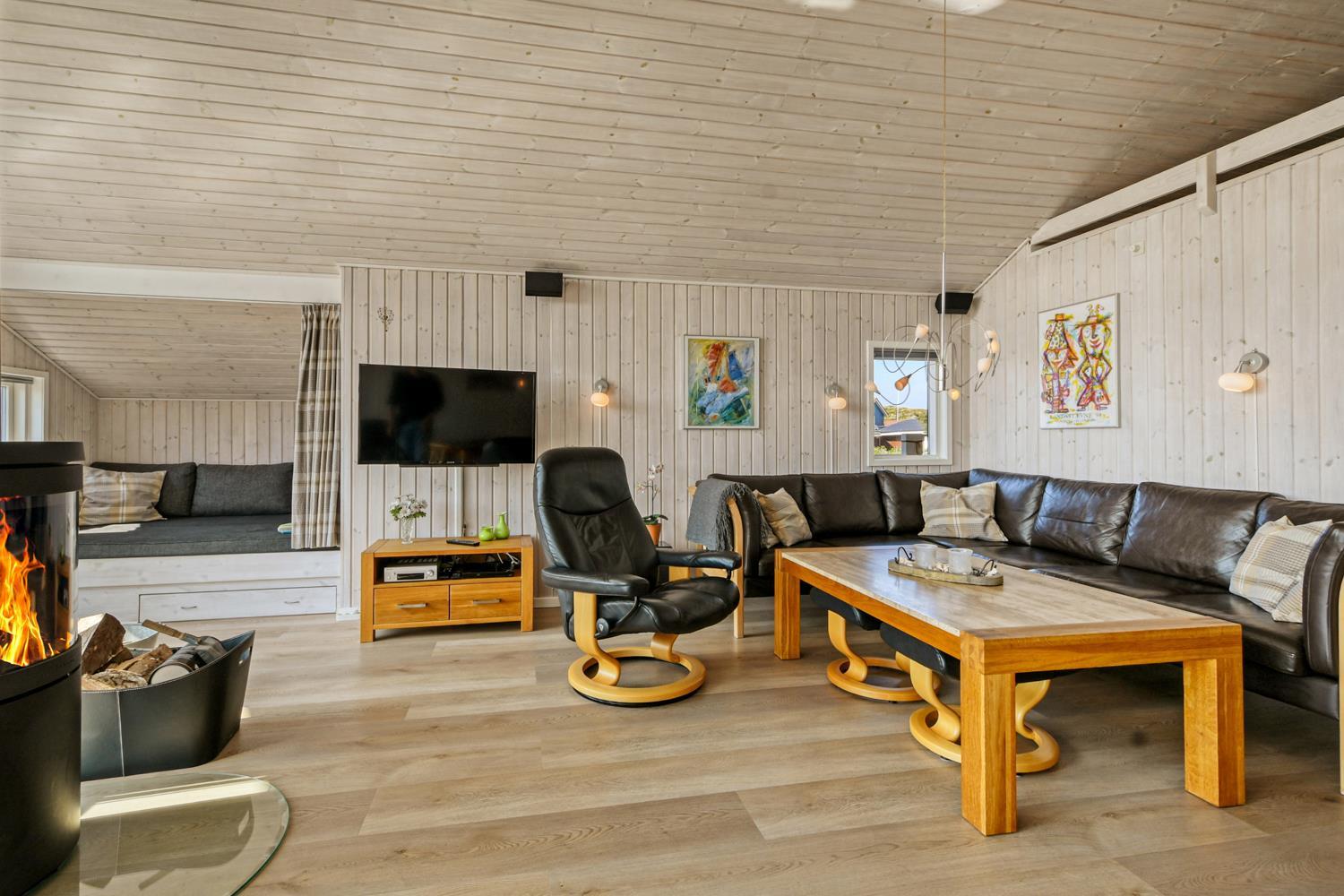 Dieses gepflegte Ferienhaus mit 92 qm ist gut isoliert; außerdem gibt es Brennofen und Wärmepumpe, die beide dabei helfen, den Wärmeverbrauch zu reduzieren. Im Wohnraum gibt es eine große Fensterpartie, die für einen guten Lichteinfall im ganzem Raum sorgt. Es gibt neuen Laminatboden im ganzen Haus. 3 Schlafräume: 1DB + 1DB + 1B. Im Wohnraum gibt es noch einen Alkoven mit 2 Schlafplätzen. In einem der Schlafräume gibt es TV und DVD-Spieler. Auf dem offenen Schlafboden gibt es 2 Schlafmöglichkeiten - die Leiter zum Schlafboden ist sehr steil -. Gemütlich eingerichteter Wohnraum mit Kaminofen, TV mit dänischen und deutschen Programmen. Schöne Küche mit Ceranfeld-Herd, Kühl-/Gefrierschrank, Geschirrspüler, Mikrowelle und Abzugshaube. Badezimmer mit Toilette, Waschbecken, Dusche, Whirlpool und Zugang zur Sauna, Fußbodenheizung. Hier gibt es auch die Waschmaschine und den Trockner. Gäste-WC: Toilette und Waschbecken. Für die kleinsten Gäste gibt es eine Babybadewanne, Kinderbett und Kinderstuhl. Nichtraucher-Haus. Haustiere sind nicht erlaubt. Obligatorische Endreinigung.
