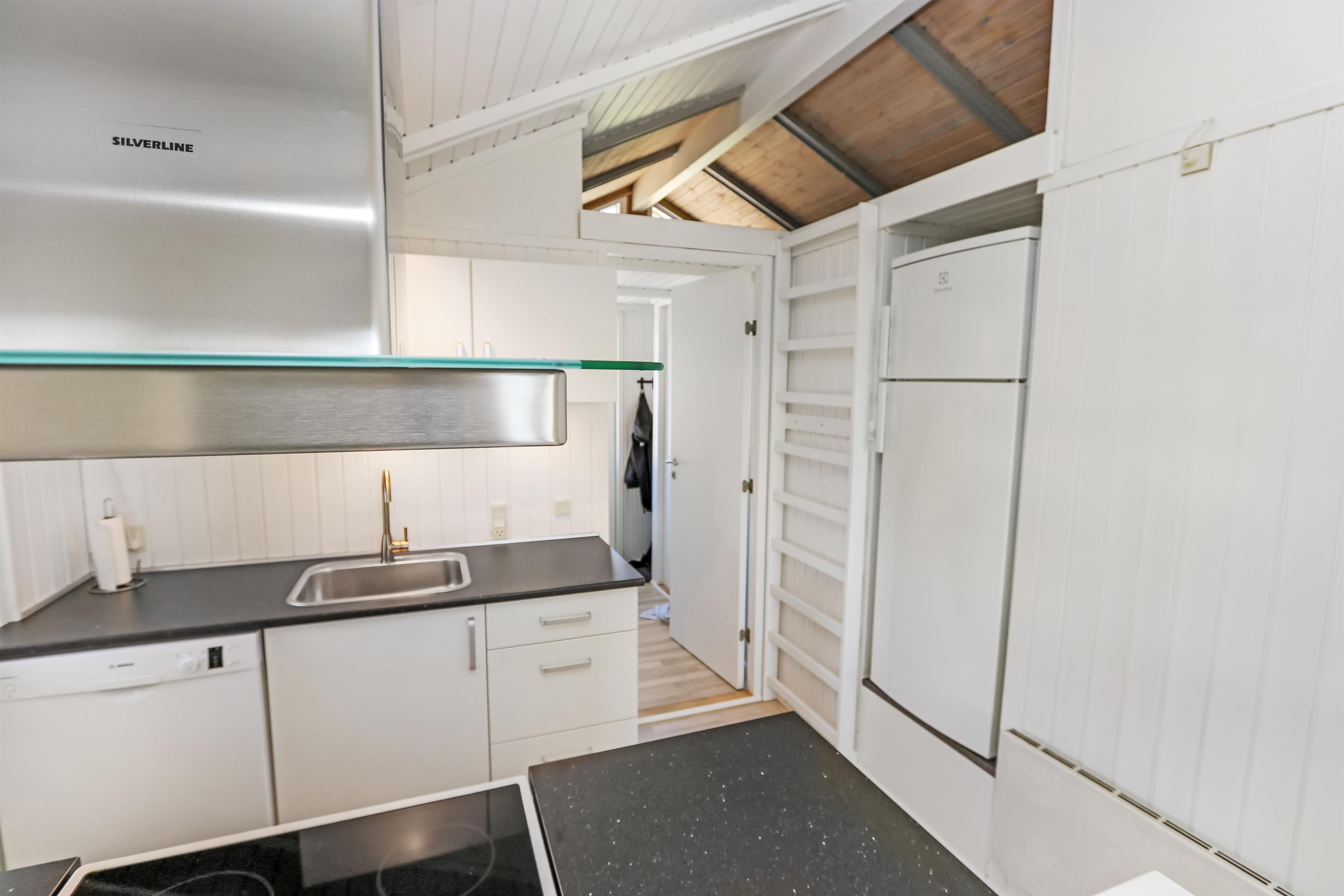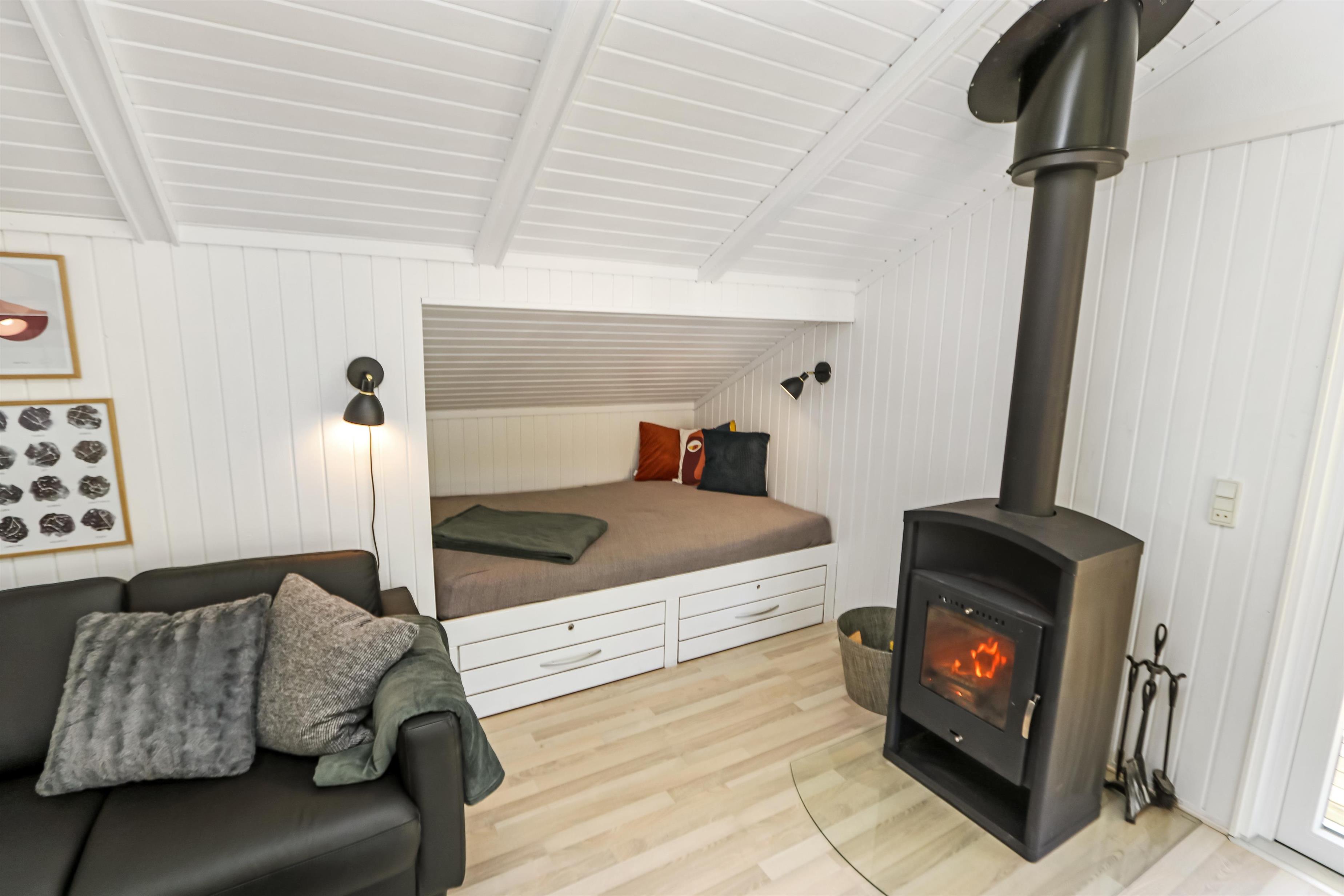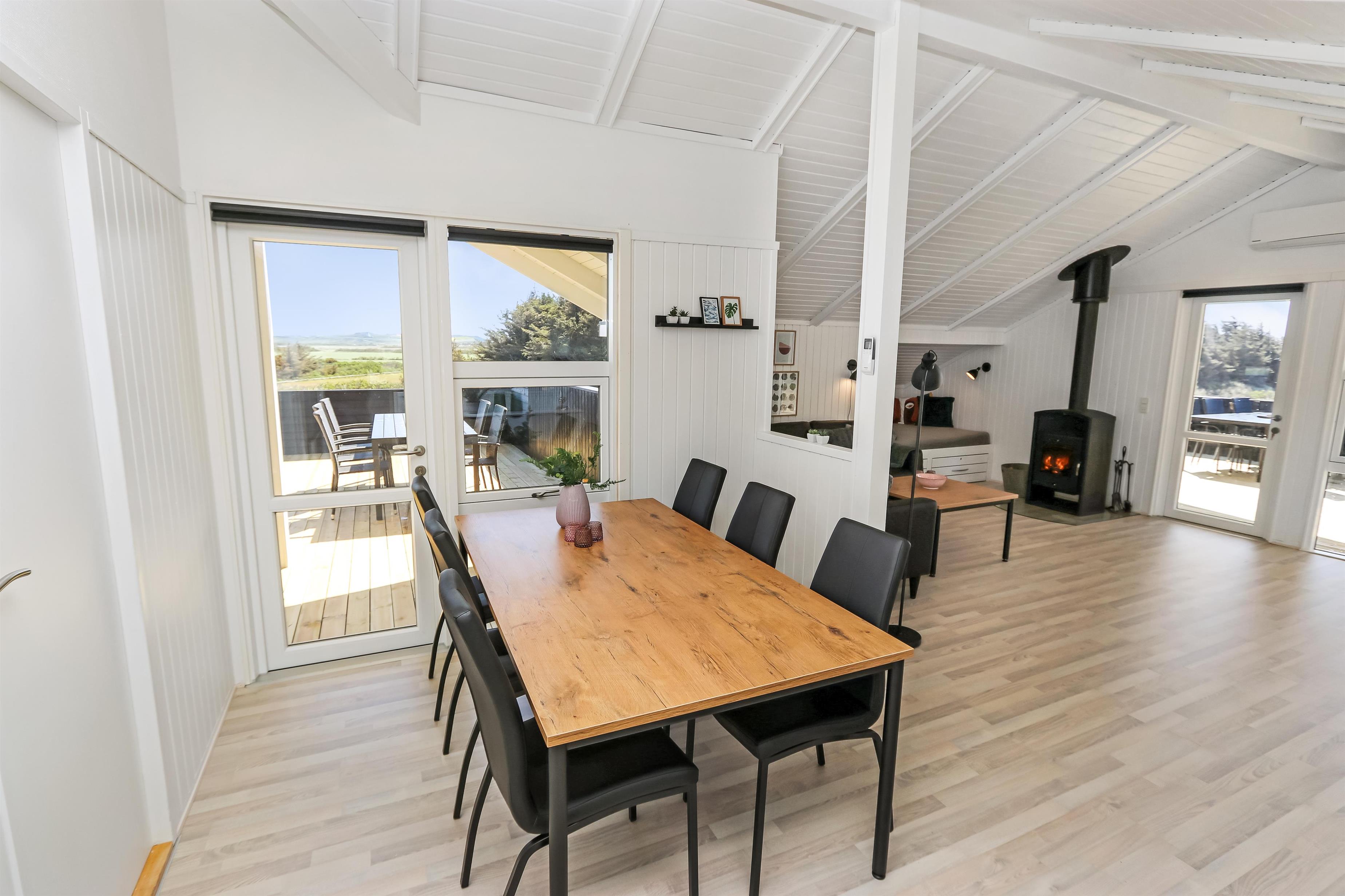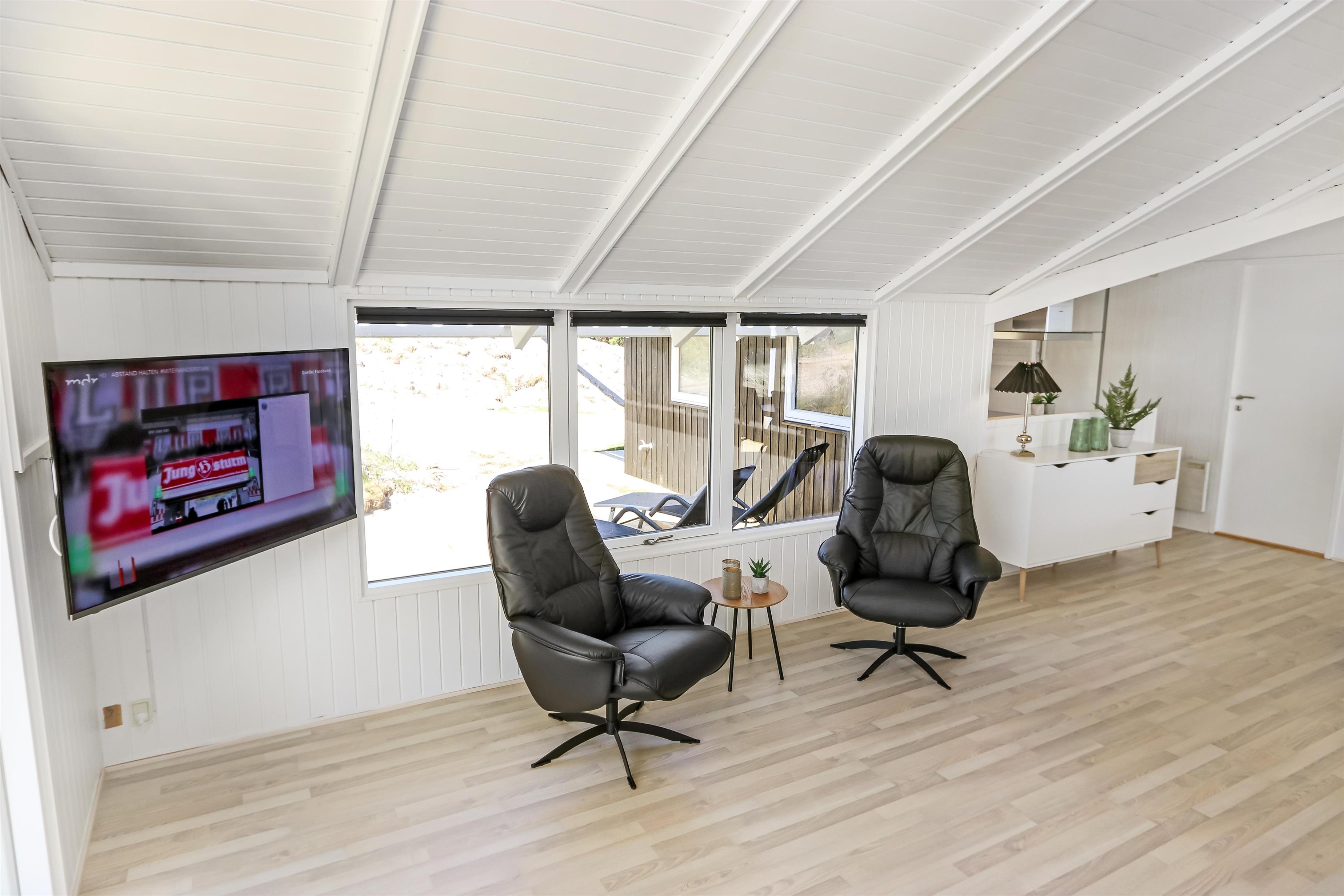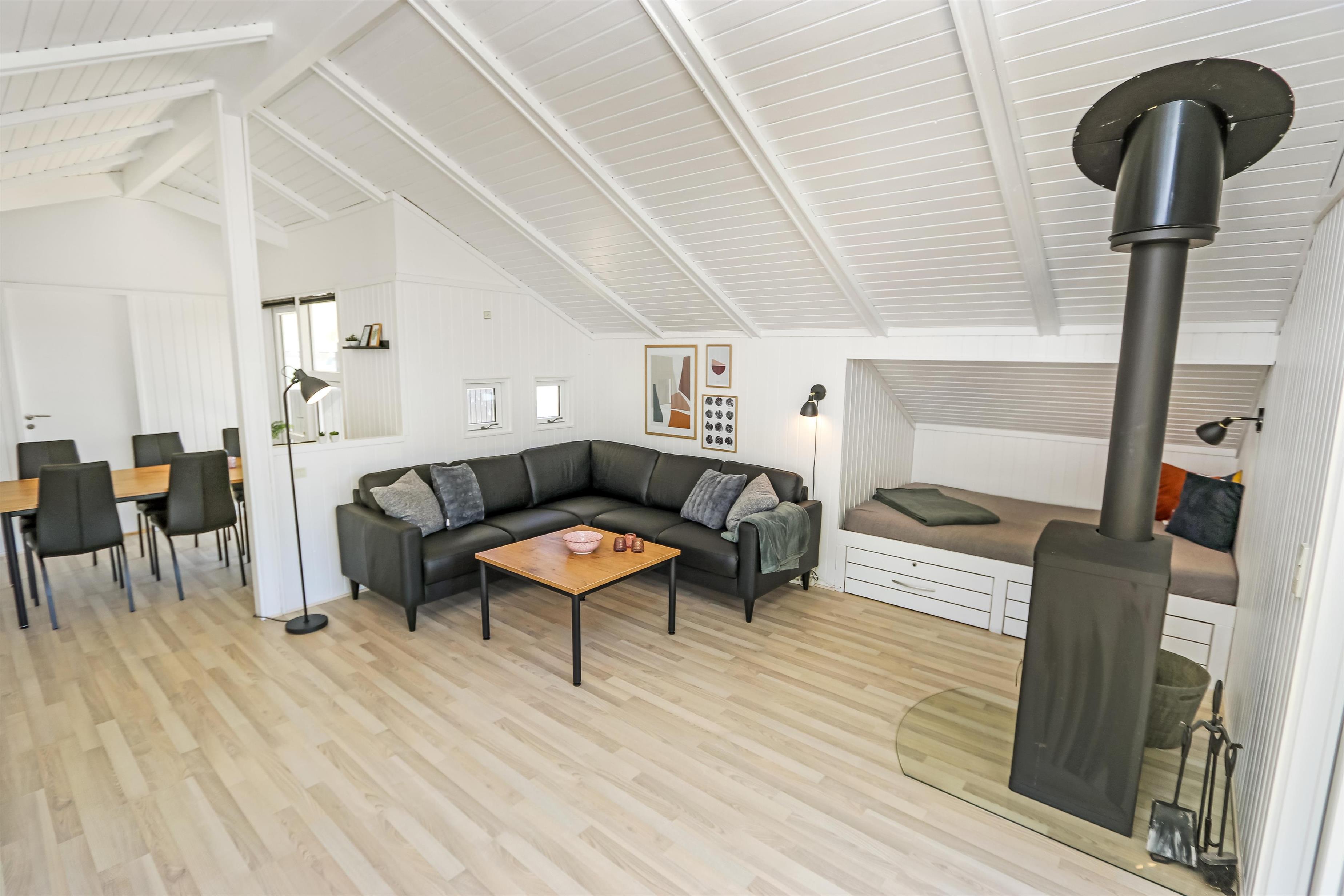 Auf einem schönen hügeligen Naturgrundstück und bloss 200 m von der Nordsee entfernt, liegt dieses prachtvolle Ferienhaus mit 76 m². Das Haus wurde in 1989 erbaut – aber in 2020 total renoviert -. Das Haus ist minimalistisch in seinem Ausdruck und praktisch eingerichtet. Ein Flur mit extra Platz zum Ablegen heisst Sie wilkommen. Kombinierter Wohnraum und Küchenecke mit einem offenen Dachboden. Der Wohnraum ist mit neuen schönen Ledermöbeln, Esstisch, Smart-TV mit dänischen und deutschen Programmen und der Möglichkeit für Streaming von TV/Radio/Apps eingerichtet. Haben Sie ein Handy oder ein anderes Gerät mit dem Sie streamen können, haben Sie hier die Möglickeit. Entspannen Sie vor dem Kaminofen, der zusammen mit der Wärmepumpe für niedrige Nebenkosten sorgt. Praktische harte Boden im Wohnraum und der Küche. 3 gute Schlafräume, alle mit neuen guten Betten: 1DB + 1DB + 1E und ein Alkoven mit 2 Schlafplätzen im Wohnraum. Für die Kleinsten gibt es Kinderbett und Kinderstuhl. Ganz neue Küche mit allem an Kochgeschirr und Geschirr und ein Herd mit Cerankochfeld, Abzugshaube, Geschirrspüler, Kühlschrank mit Gefrierdach und Mikrowelle. Schönes neues Badezimmer mit Fliesenboden, Toilette, Waschbecken und Dusche. Waschmaschine vorhanden. Nichtraucher-Haus. Max. 1 Haustier ist erlaubt.