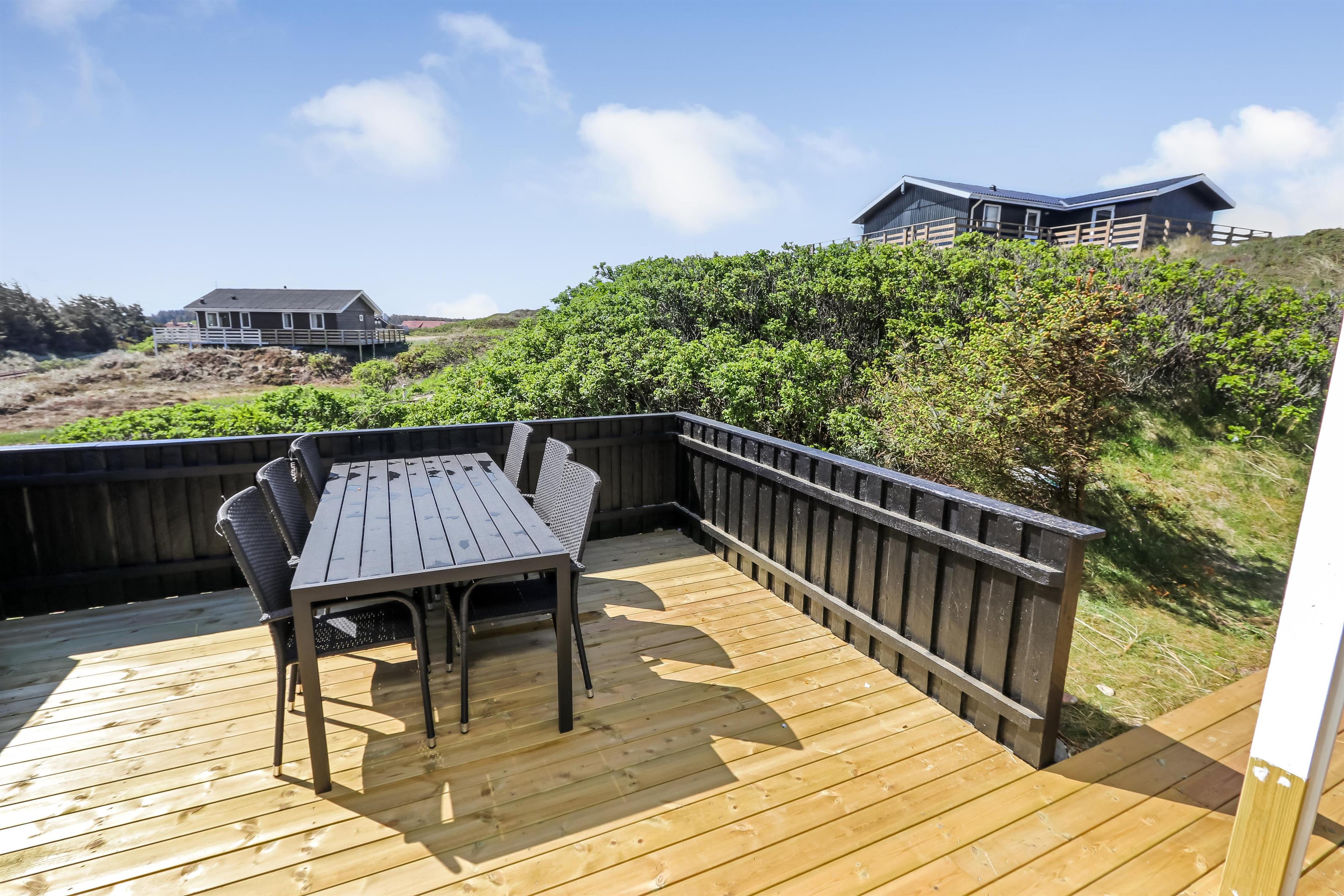 Das Haus liegt auf einem etwa 1.161 m² grossen hügeligen Naturgrundstück, bloss 200 m von der Nordsee entfernt. Es gibt einen Ausgang zu einer fantastischen, 8 ganz neuen Holzterrassen, die eine ist teilweise überdacht. Gartenmöbel, Sonnenliegen und Gas-Grill kann nach Belieben bewegt werden. Ein unglaublich schönes Haus, in dem an die meisten Dinge gedacht wurde und viele Möglichkeiten bietet. 5 - 10 Minuten vom Haus entfernt liegt die Nordsee, die immer zu einem neuen Spaziergang einlädt. Das Lebensmittelgeschäft der Region ist saisonal geöffnet und ist ca. 1.500 m vom Haus entfernt. Es bietet frisches Brot und Brötchen in der Saison. Hier können Sie auch die täglichen Einkäufe abgewickeln. Innerhalb von 25-30 Minuten können weitere Aktivitäten und Einkaufsmöglichkeiten erreicht werden. Egal, ob Sie einen aktiven Urlaub verbringen oder sich total entspannen möchten, dieses schöne Ferienhaus bietet eine schöne Kulisse in Bezug auf Haus, Lage und Umgebung.