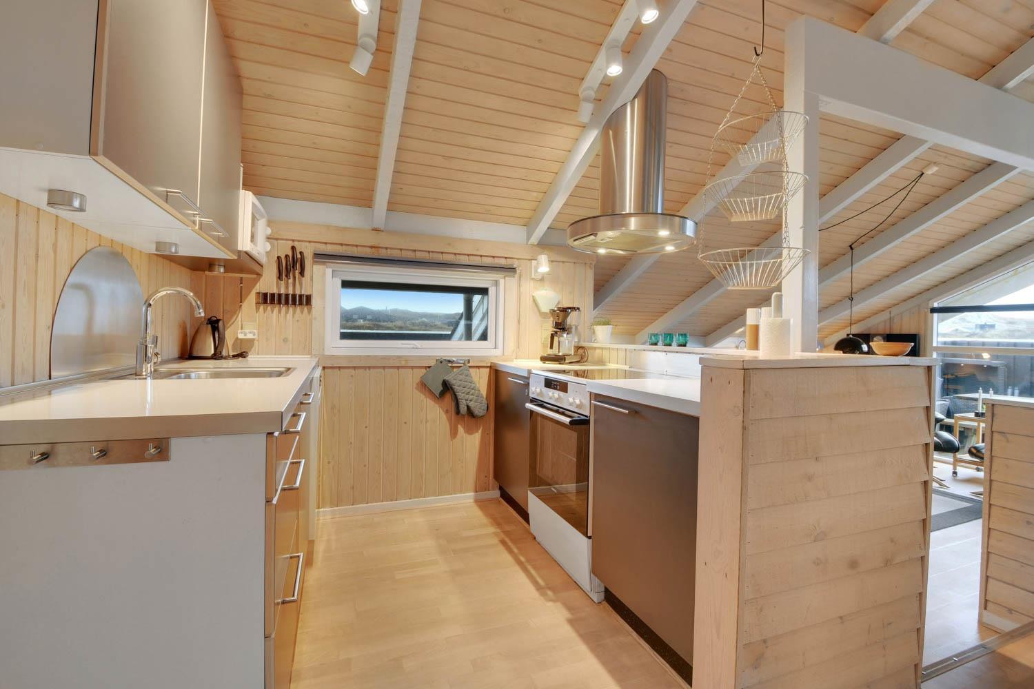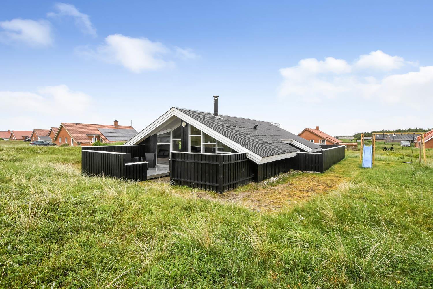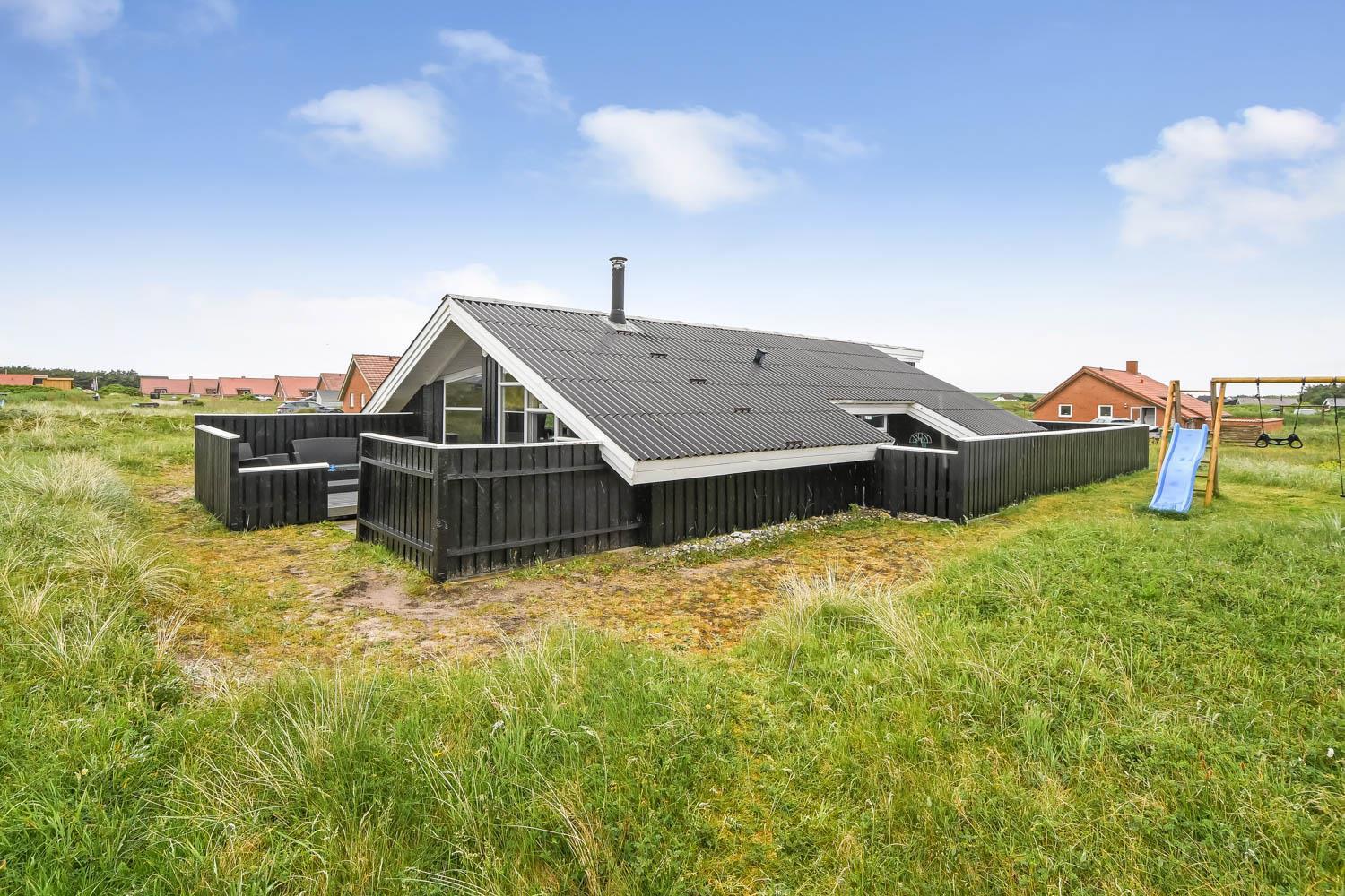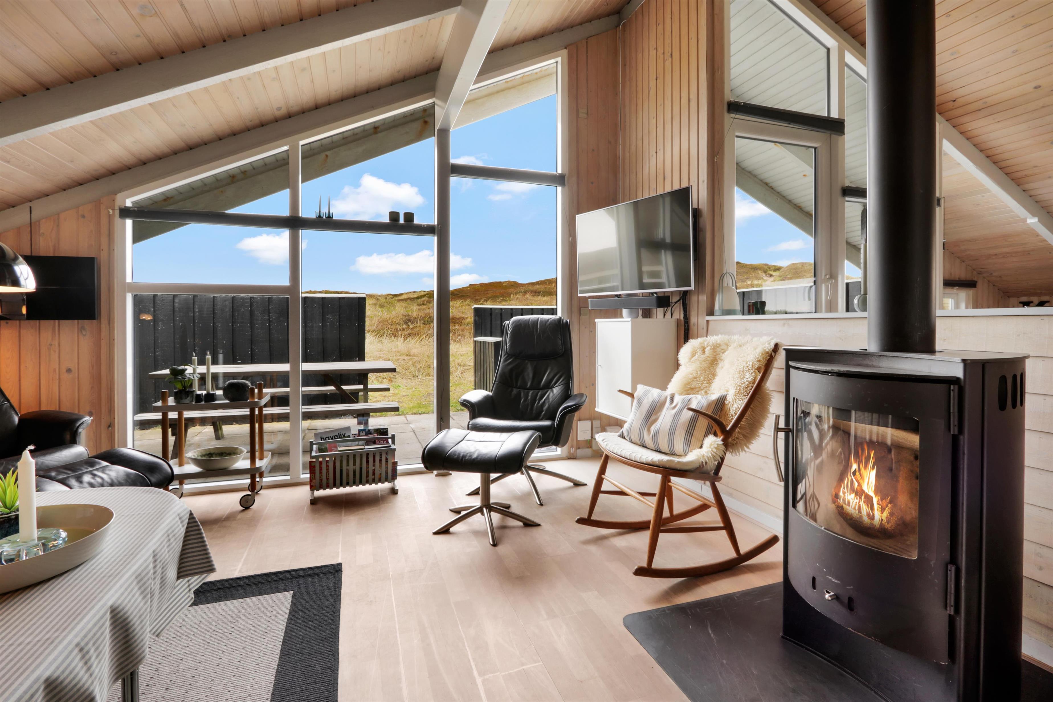 94 m² grosses, modernes Holzhaus für max. 6 Personen mit 3 Schlafräumen: 1DB + 2B + 1E und einen Alkoven mit Matratze und Kissen, der sicherlich den Kleinen gefallen wird.. Der Wohnraum ist versenkt im Verhältnis zur Küche und dem Essbereich und ist mit komfortablen Ledermöbeln, TV mit dänischen und deutschen Programmen, Radio/DVD/CD-Spieler ausgestattet und mit Chromecast. Setzen Sie sich in die Couch und machen Sie den Kaminnofen an, der zusammen mit der installierten Wärmepumpe hilft die Nebenkosten niedriger zu halten. Im Hintergrund können Sie die hohen Dünen an der Nordsee geniessen. Gut eingerichteter Küchenbereich mit z.B. Geschirrspüler, Herd mit Cerankochfeld, Abzugshaube, Mikrowelle und Kühl-/Gefrierschrank. Die Küche ist mit dem Wohn-Essraum kombiniert. Schönes Badezimmer mit Dusche, Toilette, Waschbecken, Whirlpool für 2 Personen, Handtuch Trockner und Trockner. Extra Badezimmer mit Toilette, Dusche, Waschbecken und Waschmaschine. Praktische Böden im ganzem Haus und im Whirlpoolraum gibt es Fussbodenheizung. Nichtraucher-Haus. Max. 1 Haustier ist erlaubt, nur Hunde sind erlaubt.