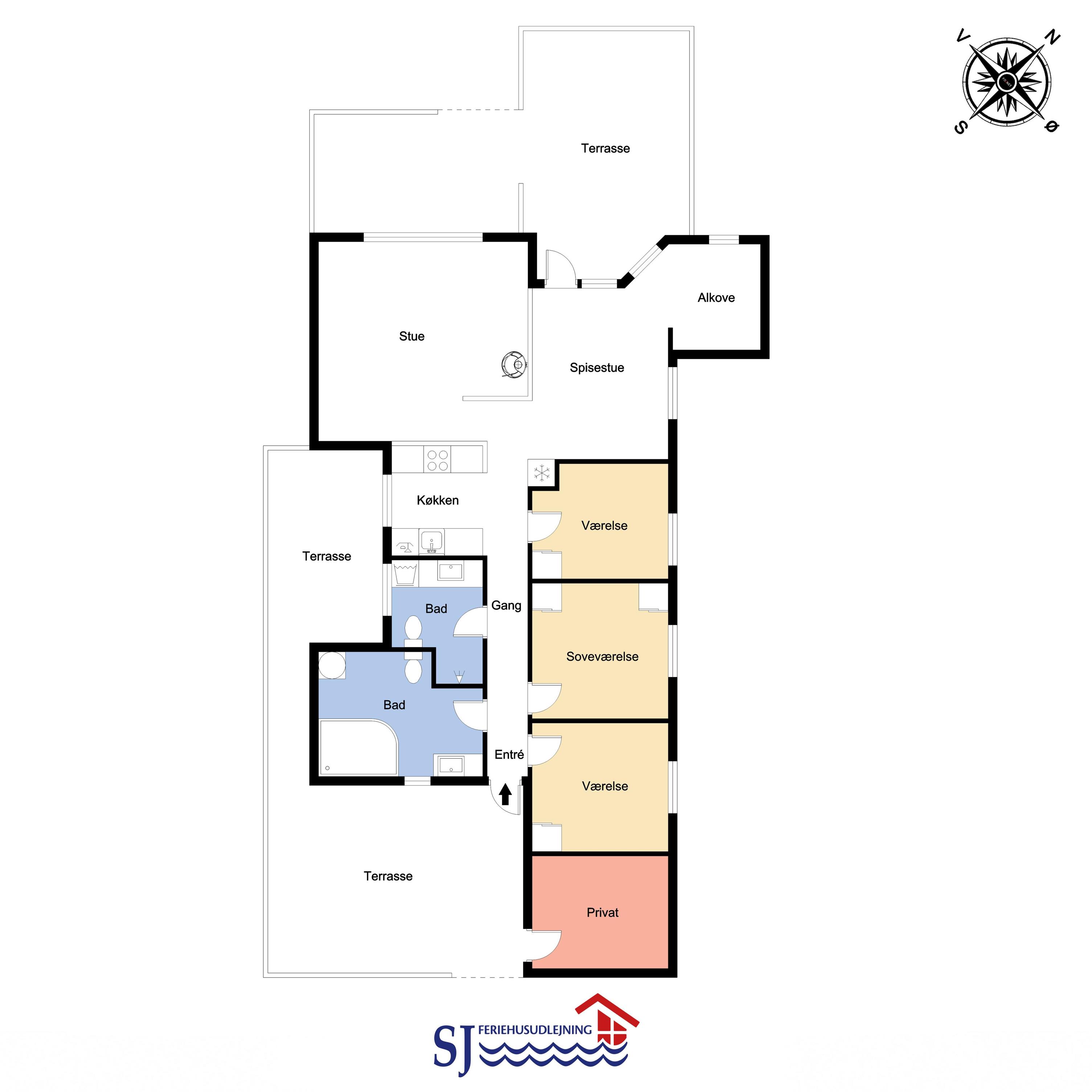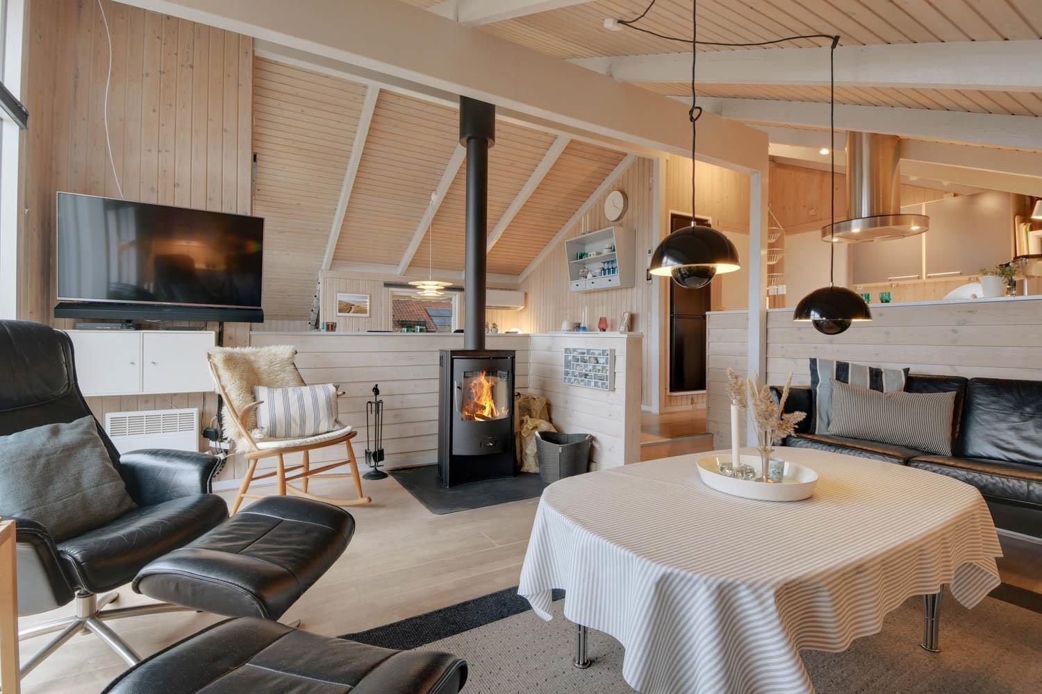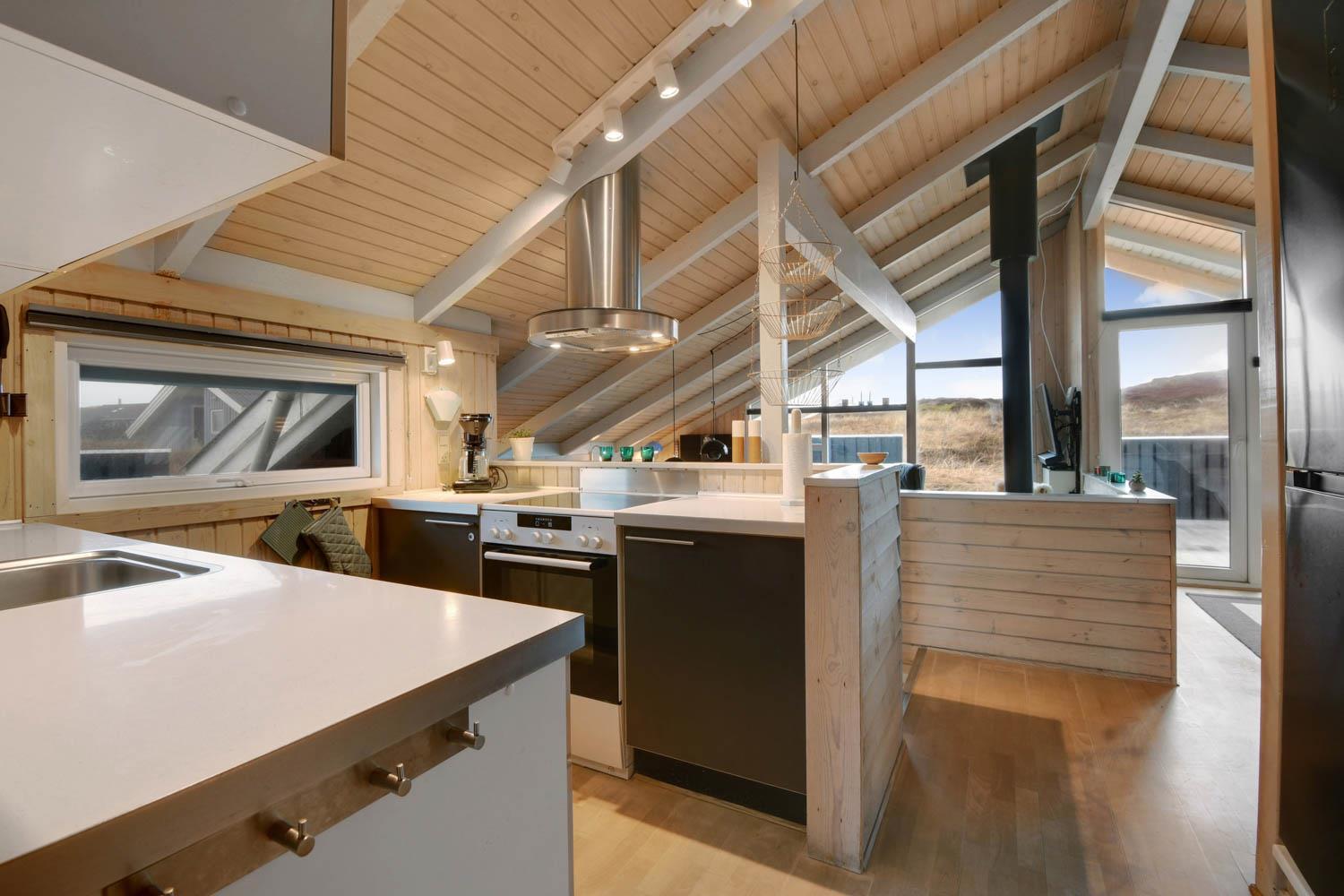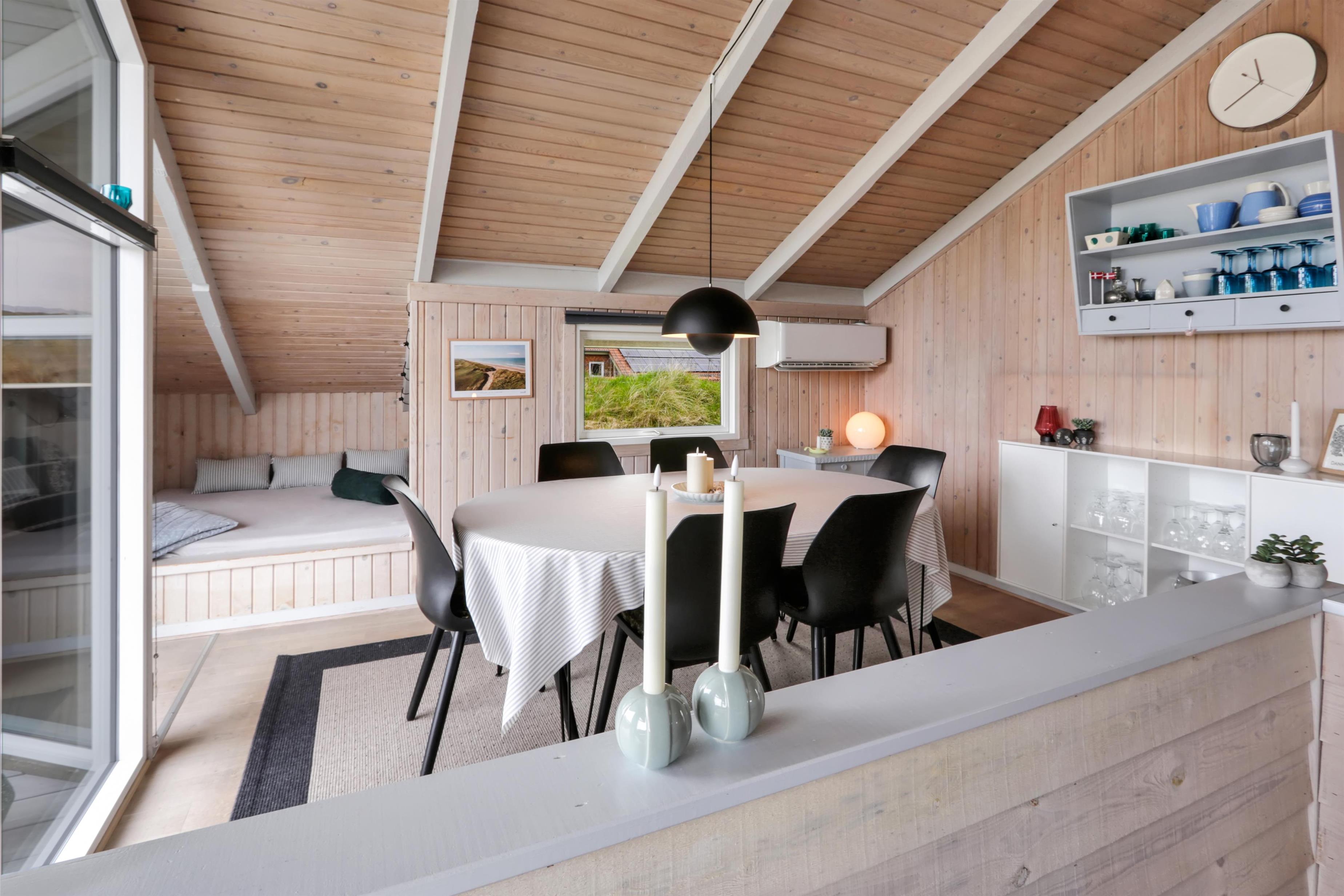 94 m² grosses, modernes Holzhaus für max. 6 Personen mit 3 Schlafräumen: 1DB + 2B + 1E und einen Alkoven mit Matratze und Kissen, der sicherlich den Kleinen gefallen wird.. Der Wohnraum ist versenkt im Verhältnis zur Küche und dem Essbereich und ist mit komfortablen Ledermöbeln, TV mit dänischen und deutschen Programmen, Radio/DVD/CD-Spieler ausgestattet und mit Chromecast. Setzen Sie sich in die Couch und machen Sie den Kaminnofen an, der zusammen mit der installierten Wärmepumpe hilft die Nebenkosten niedriger zu halten. Im Hintergrund können Sie die hohen Dünen an der Nordsee geniessen. Gut eingerichteter Küchenbereich mit z.B. Geschirrspüler, Herd mit Cerankochfeld, Abzugshaube, Mikrowelle und Kühl-/Gefrierschrank. Die Küche ist mit dem Wohn-Essraum kombiniert. Schönes Badezimmer mit Dusche, Toilette, Waschbecken, Whirlpool für 2 Personen, Handtuch Trockner und Trockner. Extra Badezimmer mit Toilette, Dusche, Waschbecken und Waschmaschine. Praktische Böden im ganzem Haus und im Whirlpoolraum gibt es Fussbodenheizung. Nichtraucher-Haus. Max. 1 Haustier ist erlaubt, nur Hunde sind erlaubt.