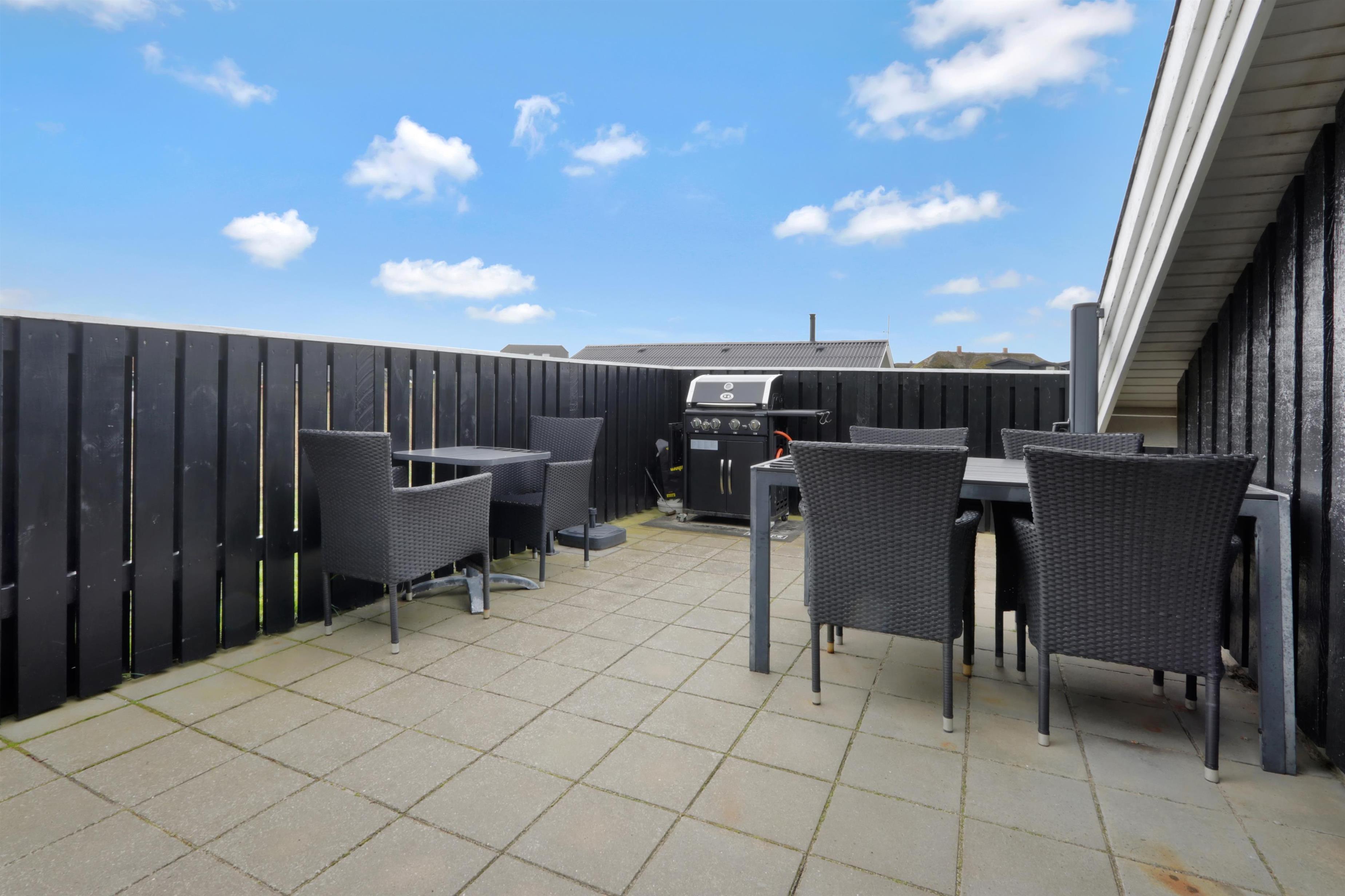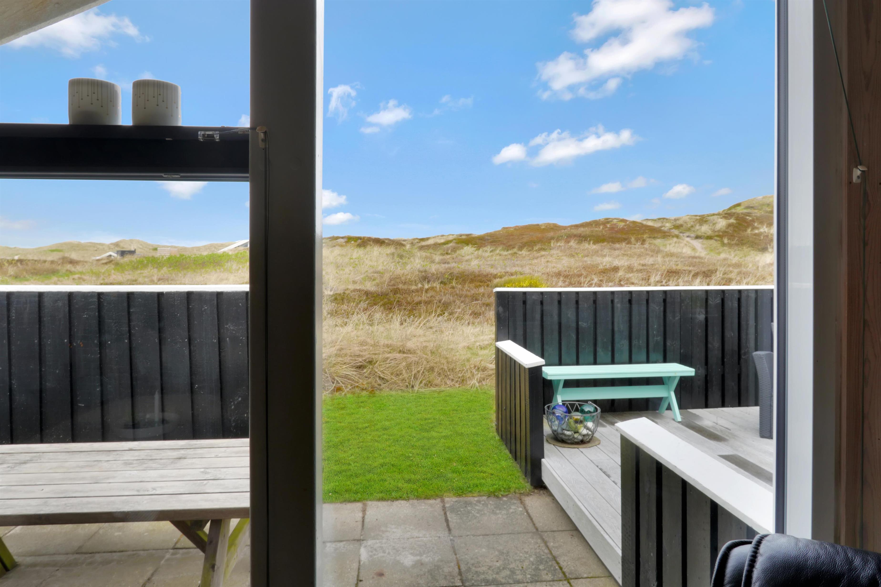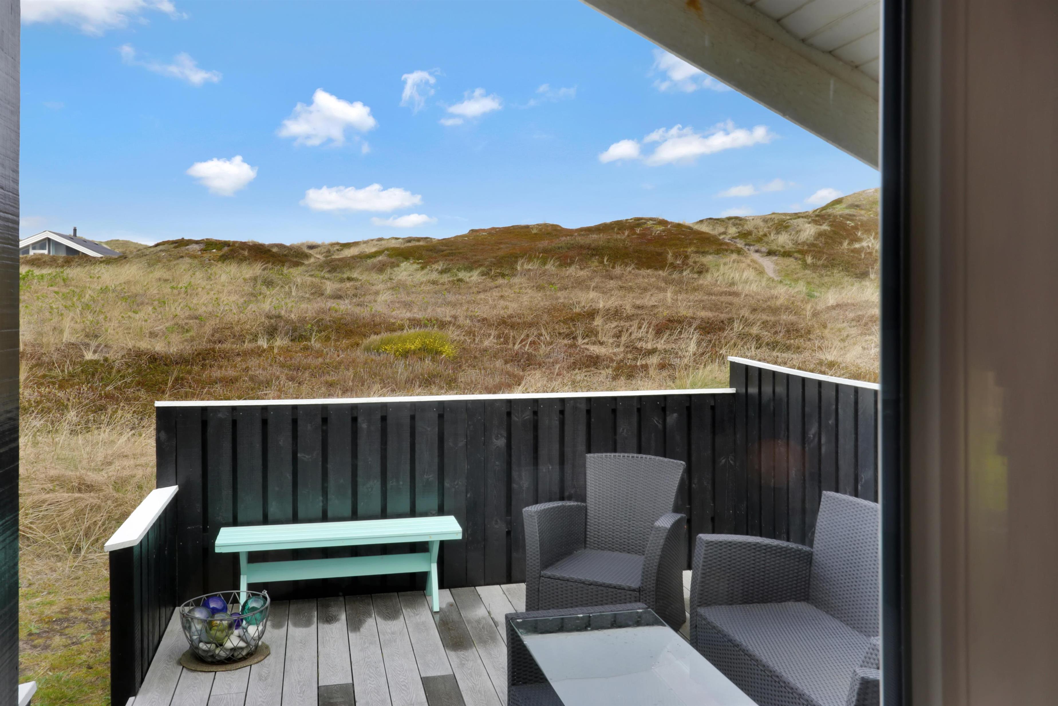 Vom Haus haben Sie einen Ausgang zur teilweise überdachten Terrasse und vom Flur gibt es ebenfalls einen Ausgang zu einer eingezäunten Terrasse, ideal wenn Sie Kinder oder einen Hund mitbringen. Von den Terrassen können Sie die rauschende Nordsee hören. Gartenmöbel, Sonnenliegen und Gas-Grill stehen natürlich auch zur Verfügung. Das Haus liegt bloss 170 m vom weissen Sandstrand entfernt. Ein unglaublich schönes Haus, wo fast an alles gedacht ist. Der Kaufmann hat in der Saison geöffnet und liegt bloss 1500 m vom Haus entfernt und bietet täglich frische Brötchen. Hier können Sie die täglichen Einkäufe machen. Das kleine Cafe liegt auch bloss 1500 m vom Haus entfernt. Innerhalb von 25-30 Minuten können Sie mehrere Aktivitäten erreichen und auch andere Einkaufsmöglichkeiten. Wollen Sie einen aktiven oder einen entspannten Urlaub, dann ist dieses Haus eine sehr gute Wahl, mit Lage und Umgebung.