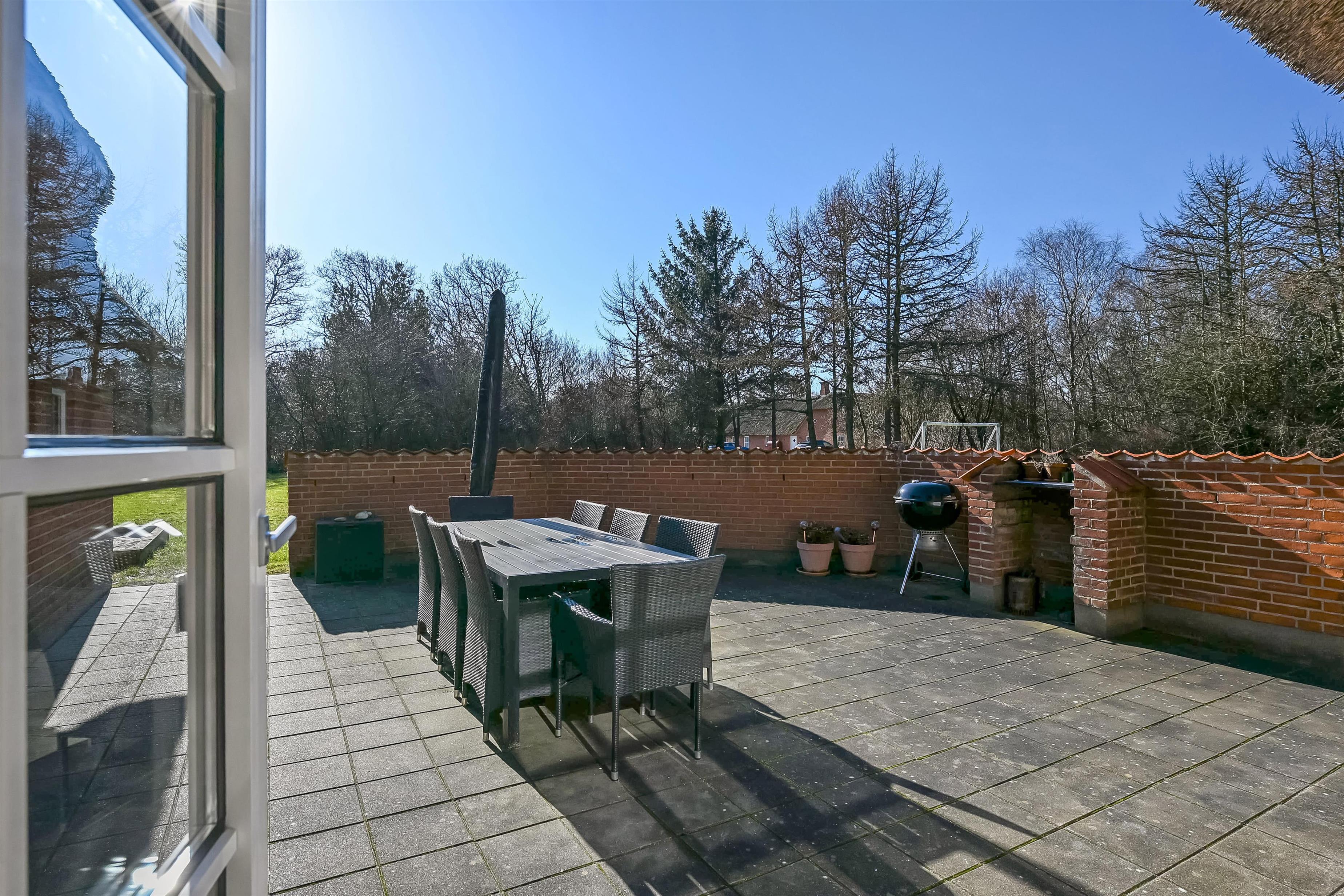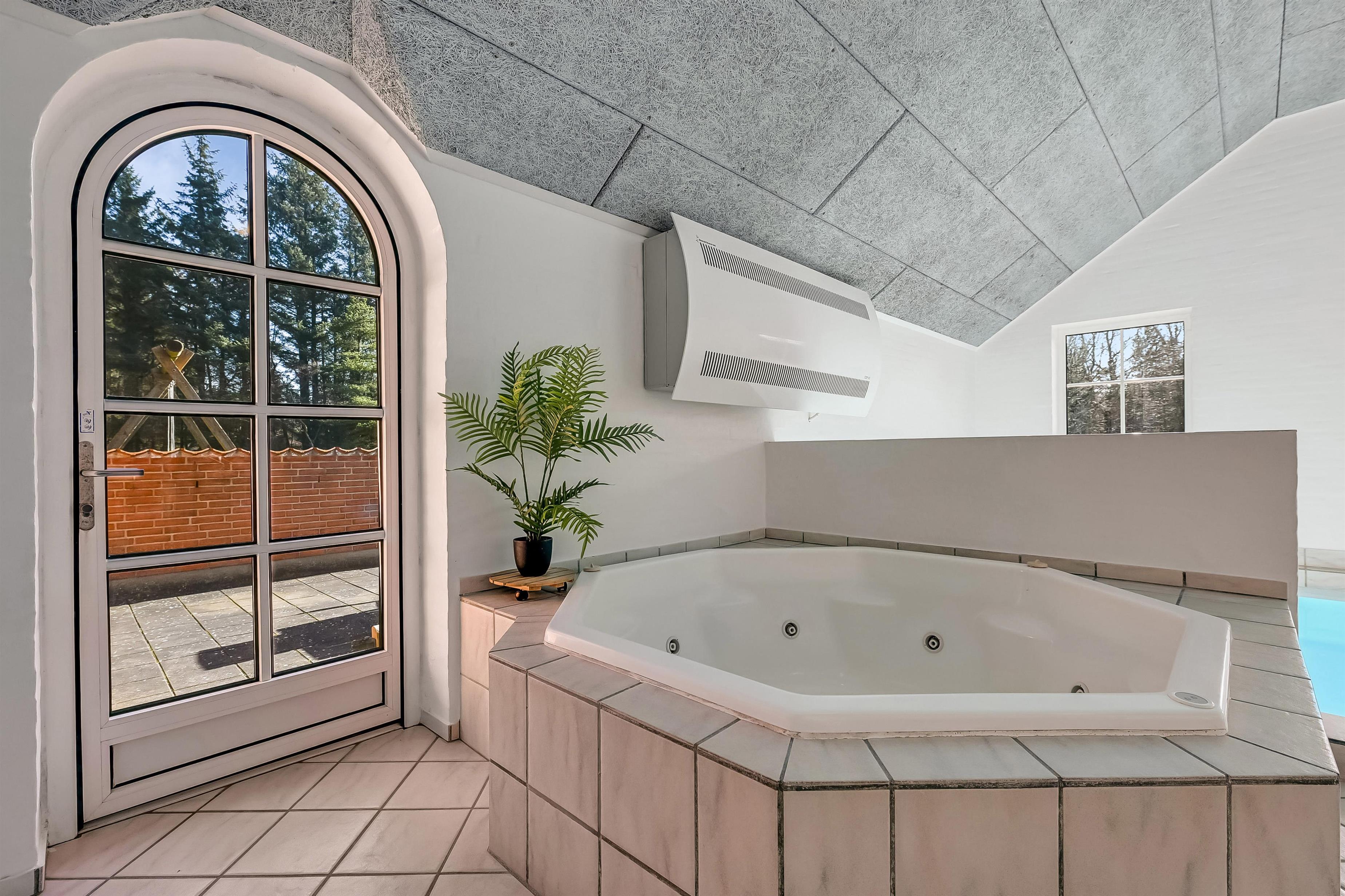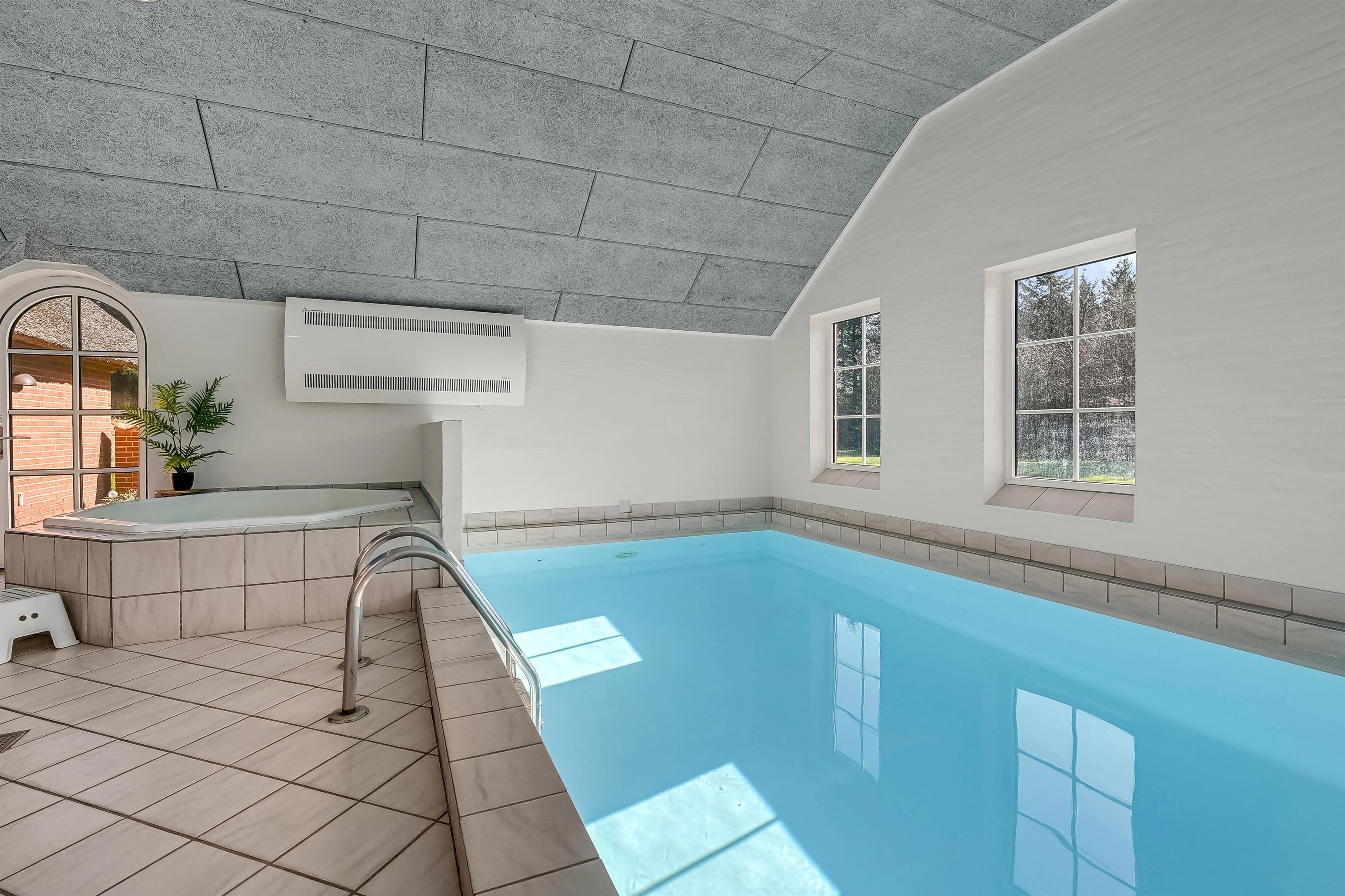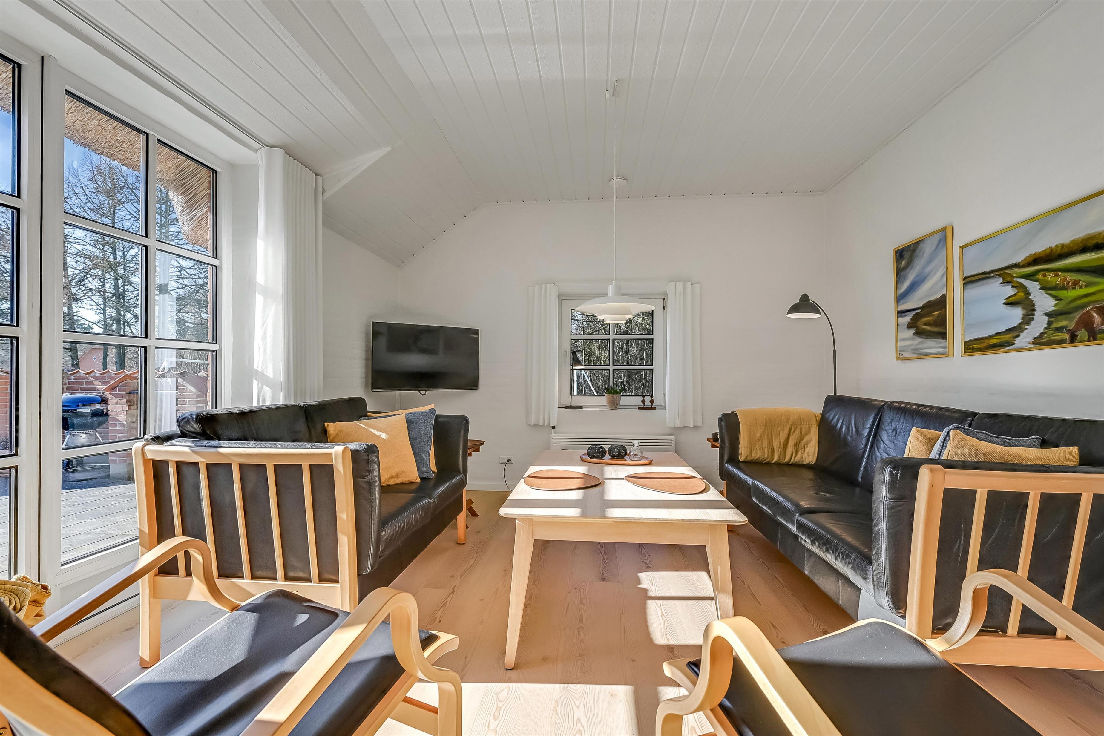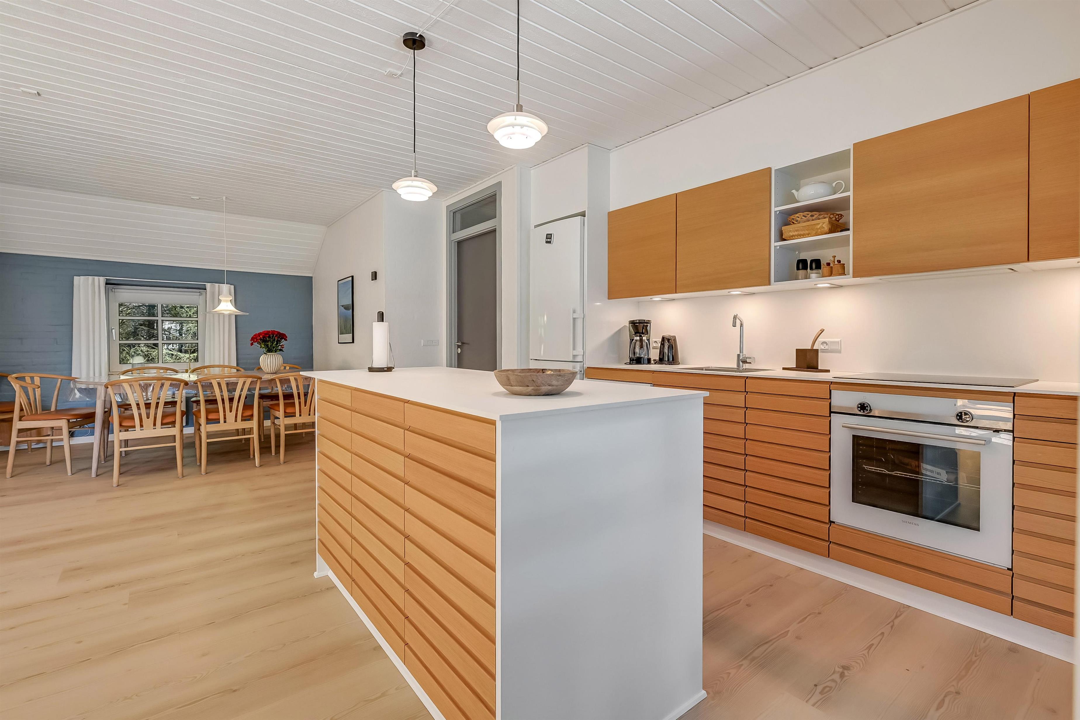 Aufteilung: Eingangsflur mit Waschmaschine und Wäschetrockner. An die neue, gut ausgestattete Küche schließt sich das Wohnzimmer mit hochwertigen Möbeln und einem schönen Kaminofen an. Insgesamt 4 Schlafzimmer, drei mit Doppelbett und eines mit zwei Einzelbetten. Die Wellnessabteilung hält Swimmingpool, Whirlpool und Sauna für euch bereit. Es gibt zwei moderne Bäder mit Fußbodenheizung und einer begehbaren Dusche. Dänisches TV DR und Satellitenschüssel für den Empfang deutscher TV-Sender.