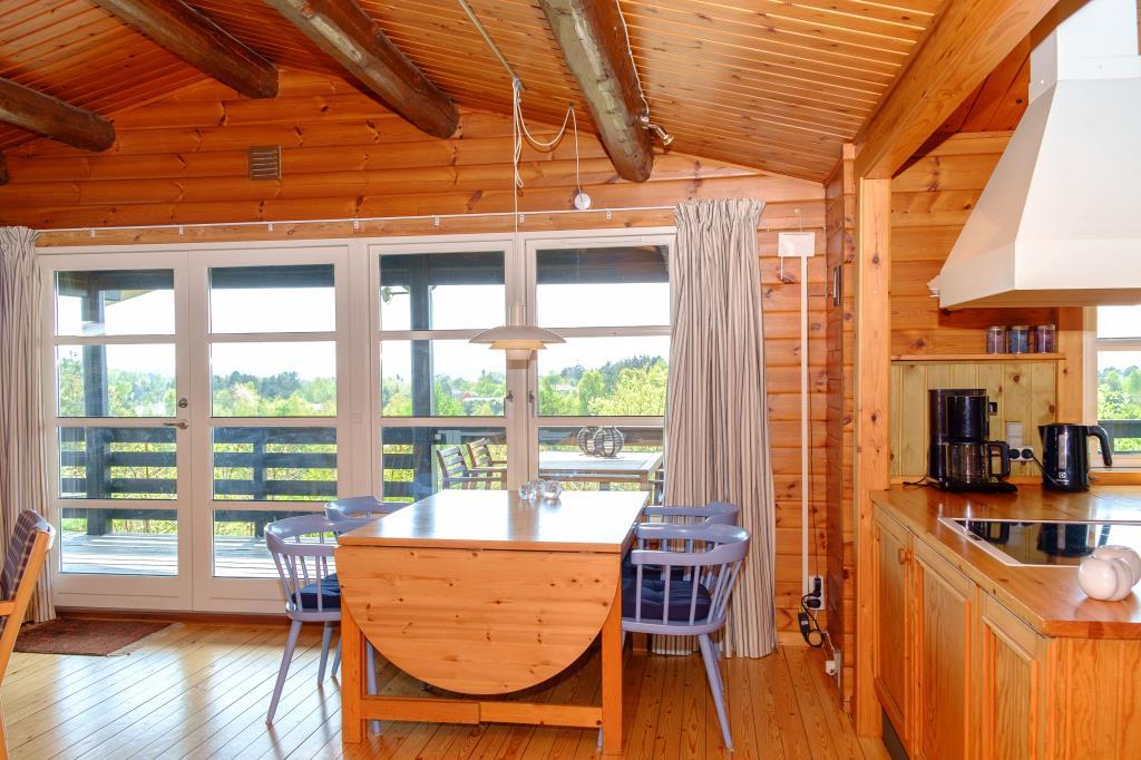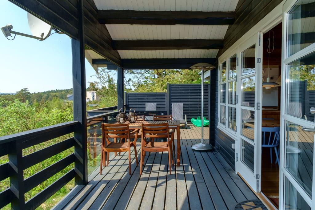 Dieses charmante, renovierte und bestens ausgestattete Ferienhaus liegt hoch oben an einer Sackgasse auf einem naturbelassenen Grundstück mit herrlichem Südwest-Panoramablick auf Ebeltoft Vig und Mols Bjerge, den Sie sowohl von der Terrasse als auch vom Wohnzimmer und der Küche aus genießen können. Die große, sonnige Terrasse mit Gartenmöbeln und Grill ist in einen offenen Bereich und einen überdachten Bereich unterteilt, wo Sie abends bei einem Drink den Sonnenuntergang über Mols Bjerge genießen können. Das gemütliche, liebevoll eingerichtete Wohnzimmer verfügt über einen Kaminofen, Sat-TV, Stereoanlage mit CD- und DVD-Player. Die gut ausgestattete Küche bietet ein Cerankochfeld, einen Kühlschrank mit separatem Gefrierfach, eine Mikrowelle und einen Geschirrspüler. Das moderne Badezimmer ist mit Dusche, Fußbodenheizung und Waschmaschine ausgestattet. Das Haus verfügt über drei Schlafzimmer: eines mit Doppelbett, eines mit zwei Einzelbetten und eines mit Etagenbett. Alle Betten sind mit bequemen Boxspringmatratzen ausgestattet. Für die kleinen Gäste bietet das Haus ein Kinderbett und einen Hochstuhl, eine Babybadewanne sowie Spielzeug, Spiele, Kinderbücher und Videos für Jungen und Mädchen. Das Haus ist sehr gut aufgeteilt und daher ideal für zwei Paare oder eine Familie. Es liegt in guter Lage und eignet sich hervorragend zum Wandern in Mols Bjerge. Strand, Wald, Geschäfte und Restaurants in Ebeltoft sind fußläufig erreichbar.