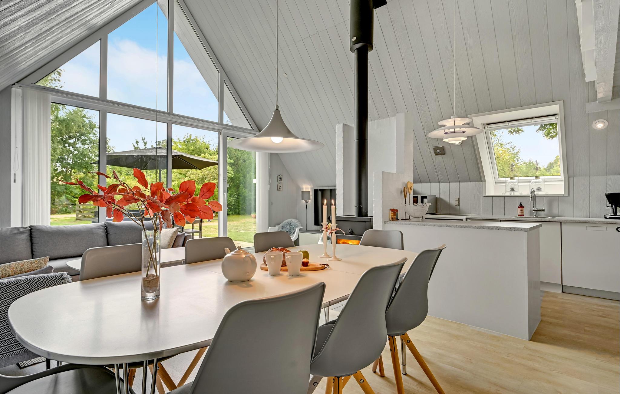 In ruhiger Umgebung, im Ferienhausgebiet Vibæk Strand und unweit von Sandstrand und Surfrevier, liegt dieses Ferienhaus. Gute Busverbindungen zum 3 km entfernten Zentrum von Ebeltoft. Das Haus liegt auf einem flachen Grundstück und ist komfortabel eingerichtet. Für Ihren erholsamen Urlaub gehören zur attraktiven Ausstattung eine Sauna und ein Whirlpool. Dieses schöne Ferienhaus bietet Platz für zwei Familien. Ein Zweit-TV befindet sich in der oberen Etage.