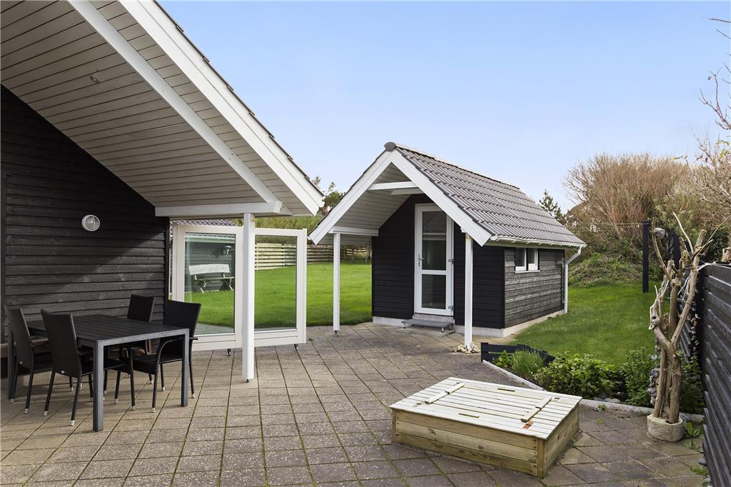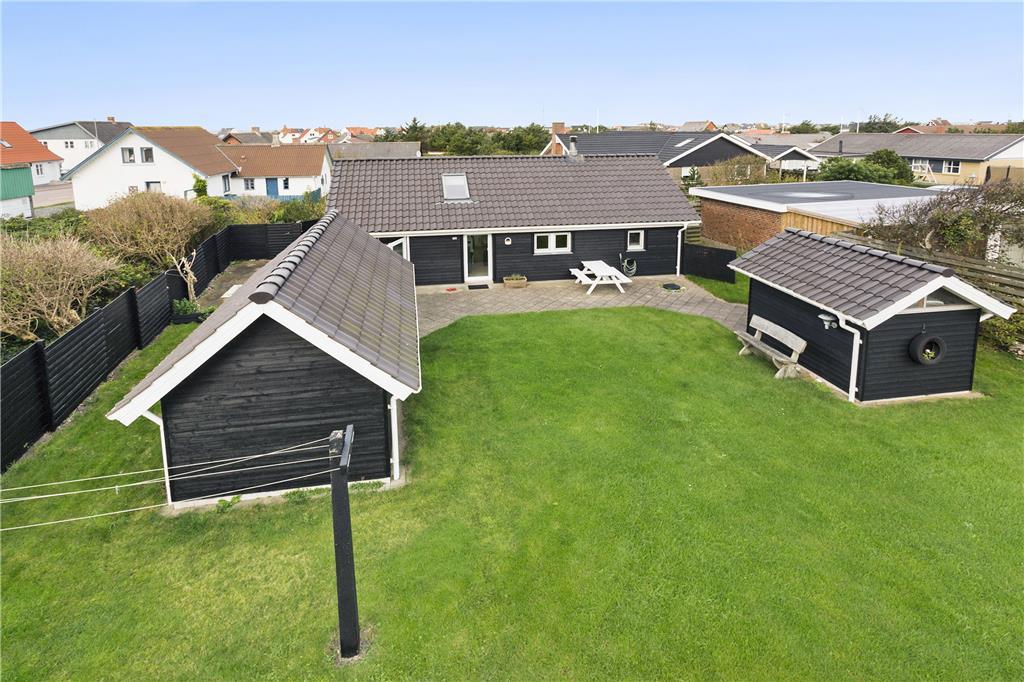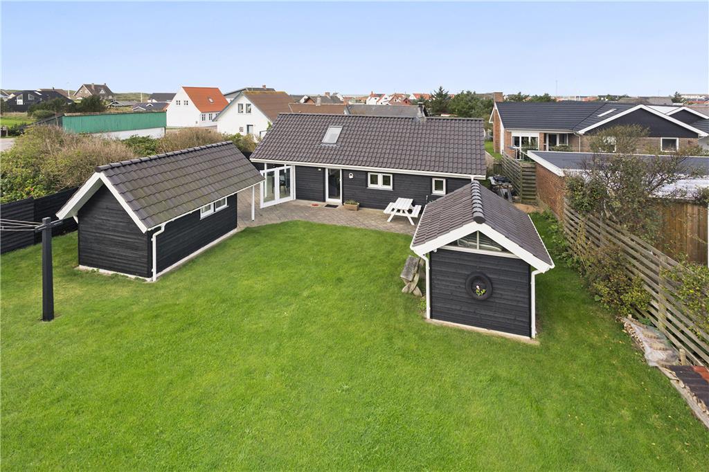Wenn die Sonne über der Westküste scheint, kannst du das Leben im Freien in vollen Zügen genießen. Die großzügige Terrasse ist perfekt für ein entspanntes Frühstück im Morgenlicht oder einen gemütlichen Grillabend mit Familie und Freunden. Der weitläufige Garten bietet viel Platz für Aktivitäten und Spiele für Groß und Klein. Wenn du Ruhe suchst, kannst du dich mit einem Glas Wein auf eine Liege zurückziehen und den Wellen in der Ferne lauschen. Nur wenige Gehminuten trennen dich vom feinen Sandstrand, wo du barfuß durch die Dünen wandern und den Sonnenuntergang über dem Meer bestaunen kannst.
