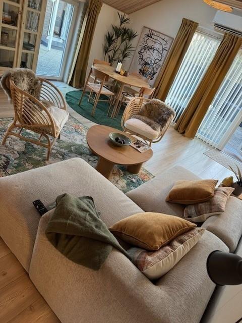 Betritt dieses einladende Ferienhaus und spüre sofort die warme, gemütliche Atmosphäre. Die moderne, aber dennoch behagliche Einrichtung schafft den idealen Rahmen für einen erholsamen Urlaub mit Familie oder Freunden. Das offene Wohnkonzept verbindet Küche, Essbereich und Wohnzimmer, sodass das Beisammensein stets im Mittelpunkt steht. An kühleren Tagen sorgt der Kamin mit knisterndem Feuer für eine behagliche Wärme, während die Wärmepumpe zu jeder Jahreszeit für ein angenehmes Raumklima sorgt. Die bequemen Möbel und das skandinavische Design laden zu entspannten Stunden mit einem guten Buch oder einem geselligen Spieleabend nach einem Tag an der frischen Seeluft ein.
