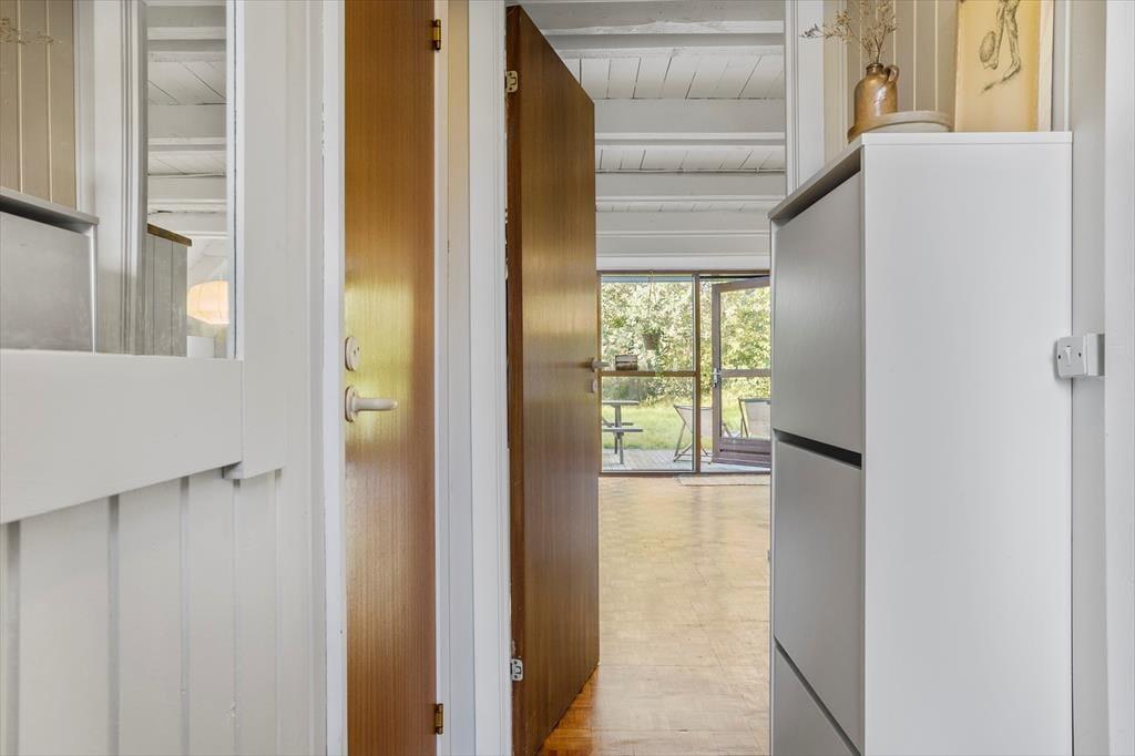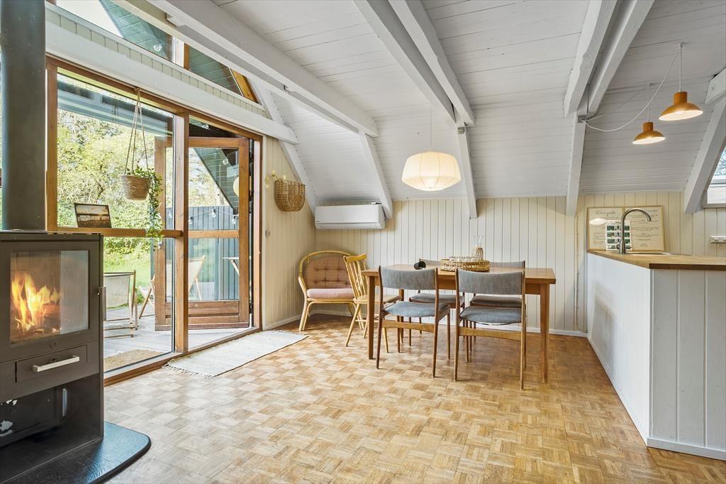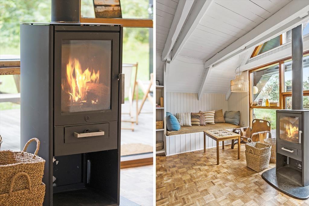 Das Ferienhaus heißt dich mit einer einladenden und gemütlichen Einrichtung willkommen, in der warme Farben an den Wänden und stilvolle Details für eine angenehme Stimmung sorgen. Das Haus erstreckt sich über zwei Etagen und bietet viel Platz sowie verschiedene Ecken, in die du dich zurückziehen kannst. An kühleren Abenden kannst du vor dem Kamin entspannen, der eine behagliche Wärme und Gemütlichkeit im ganzen Haus verbreitet. Das offene Wohnzimmer und der Küchenbereich laden zu gemeinsamen Kochabenden und gemütlichen Mahlzeiten ein, bei denen du die Familie um leckere Gerichte versammeln kannst. Die obere Etage bietet Ruhe und Frieden mit Schlafzimmern, die Charme und Komfort ausstrahlen, und in denen du bei den sanften Geräuschen der Natur einschlafen kannst.