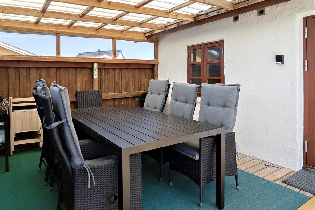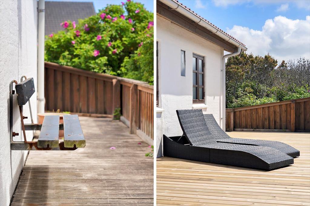 Draußen öffnet die reizvolle Terrasse des Ferienhauses eine Welt voller Möglichkeiten, in der du den Tag mit einer Tasse frisch gebrühten Kaffee im Morgenlicht beginnen und ihn mit stimmungsvollen Abenden unter freiem Himmel ausklingen lassen kannst. Die geräumige Terrasse bietet reichlich Gelegenheit sowohl zur Entspannung als auch zum Spielen – ideal für Familien mit Kindern sowie für Paare, die Ruhe genießen möchten. Hier spürst du die kühle Brise vom Meer und hörst die sanften Wellen, die im Hintergrund spielen, während du den grünen Ausblick auf die umliegende Natur genießt. Mit einem gut gestalteten Außenbereich gibt es Raum für Grillfeste ebenso wie für stille Momente mit einem guten Buch. Es ist ein Ort, an dem du den Puls der Natur spüren kannst, während du die langen, hellen Sommerabende genießt und wo sich die Terrasse in einen natürlichen Treffpunkt verwandelt, der alle Sinne erweckt.