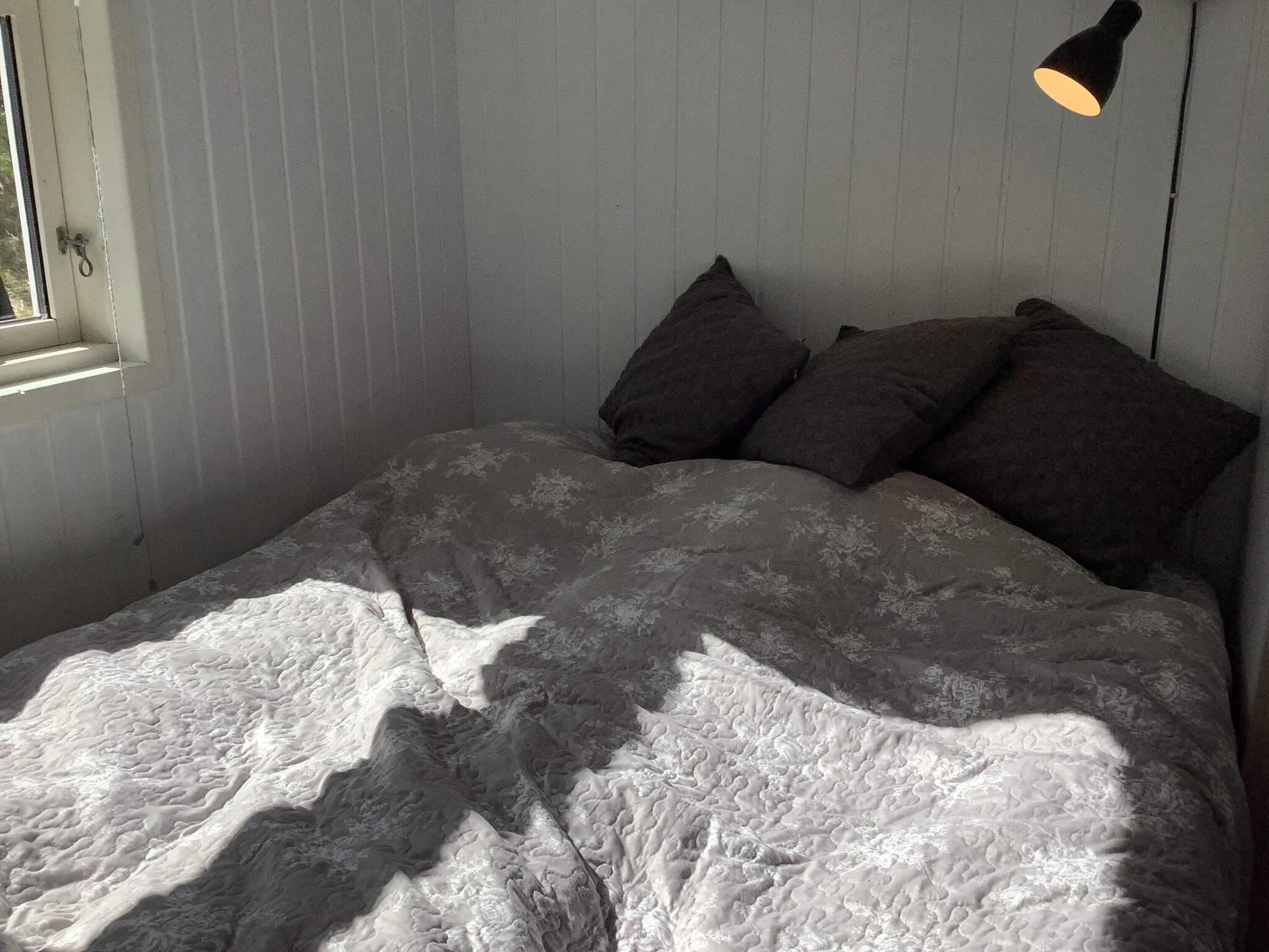 Offen kombinierter Küchen-/Wohnbereich mit Ess- und Sitzecke sowie direktem Zugang zur Terrassenfläche. Im Haus gibt es zwei Schlafzimmer mit Doppelbett. Fernsehraum mit gemütlichem Holzofen sowie klimafreundlicher Wärmepumpe. Auf der Terrasse können Sie die schönen Sommertage und -abende mit Sonne und Entspannung genießen.