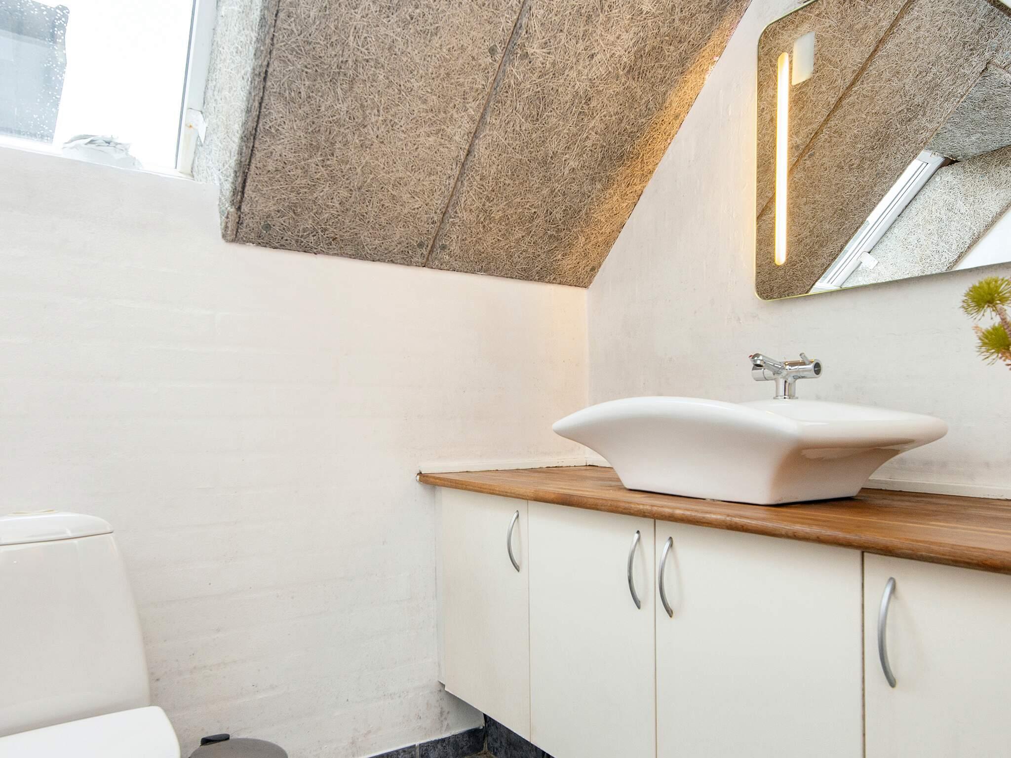 Das Ferienhaus verfügt über 2 Badezimmer mit WC, Waschbecken und Dusche sowie Fußbodenheizung. Sparsames Genvex-System und Wärmepumpe heizen das Haus.