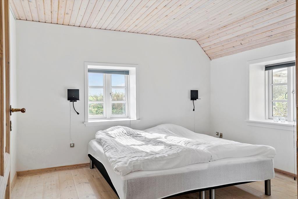 In der Klostervej 39 in Vrist liegt das Ferienhaus „Simonsbjerg“ – ein seltenes Juwel für alle, die sich nach einem Urlaub mit viel Platz, Ruhe und schöner Natur direkt vor der Haustür sehnen. Hier sind es nicht die Dünen, sondern die weite Landschaft und der atemberaubende Blick auf das Wasser, die die Urlaubsstimmung bestimmen. Das 2.500 m² große Grundstück schafft einen privaten und entspannten Rahmen für den Urlaub, und mit Aktivitätsraum, Kaminofen und Erlaubnis für Hunde ist das Haus ideal für Familien und Freundesgruppen, die die Nordsee und Vrist in ihrem eigenen Tempo genießen möchten.