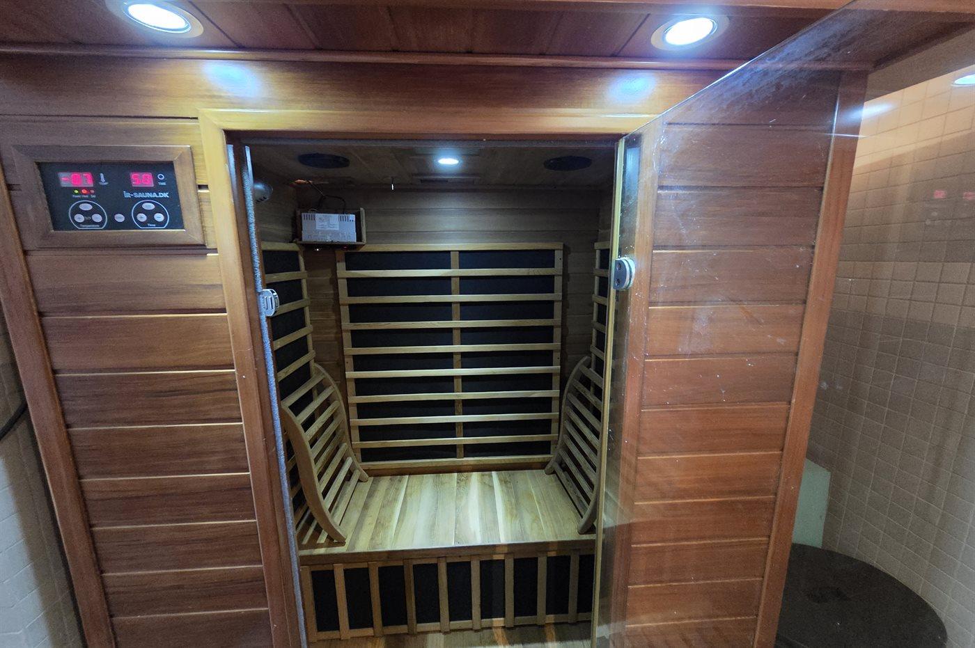 Es gibt 1 Badezimmer mit Duschnische und 1 Toilette.. Fußbodenheizung in 1 Badezimmer. In der infraroten Sauna für 2 Personen können Sie sich so richtig entspannen.