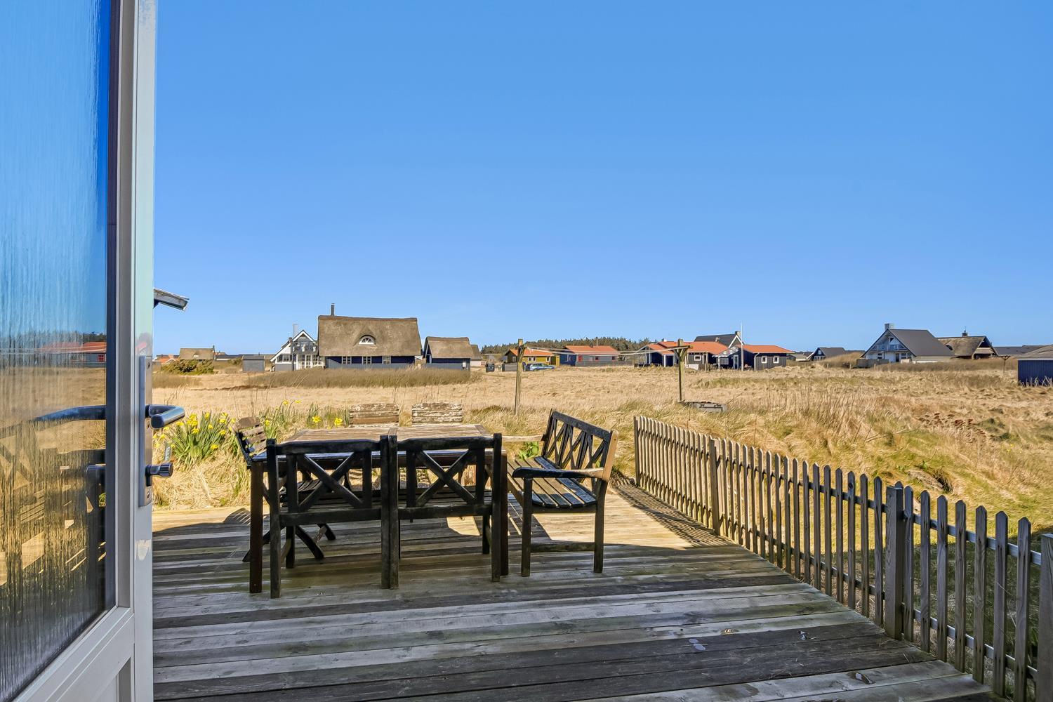 Es gibt 2 Terrassen auf verschiedenen Seiten am Haus, so haben Sie eine gute Möglichkeit Windschutz zu finden. Die eine Terrasse ist eingezäunt und deswegen sehr gut geeignet für Kinder und 1 Hund. Auf beiden Terrassen haben Sie Gartenmöbel und 2 gute Sonnenliegen. Sie können Ihr Abendsessen auf dem Grill vorbereiten und nachher auf der Terrasse an den hellen Sommerabenden geniessen. Es gibt einen praktischen abgeschlossenen Raum mit Eingang von aussen, den Sie zum Aufbewahren nutzen können. Das Gebiet bietet viele Ausflugmöglichkeiten, z.B. eine Fischauktion in Thyborøn, wo die vielen Kisten mit Fischen innerhalb von wenigen Minuten neue Besitzer finden. Thyborøn hat ein gemütliches Hafenmilleu und Jyllandsakvarium mit vielen spannenden Fischen und Aktivitäten für Kinder. Das Küstencenter liegt im gleichen Gebiet und ist auch einen Besuch wert. Von Thyborøn gibt es eine Fähre nach Agger, wo Sie den ersten Nationalpark Dänemarks in Thy besuchen können. Lemvig ist eine gemütliche Stadt am Limfjord und liegt bloss 15 Minuten mit dem Auto vom Haus entfernt. Hier gibt es eine schöne Fussgängerzone mit vielen Spezial- und Lebensmittelgeschäften.