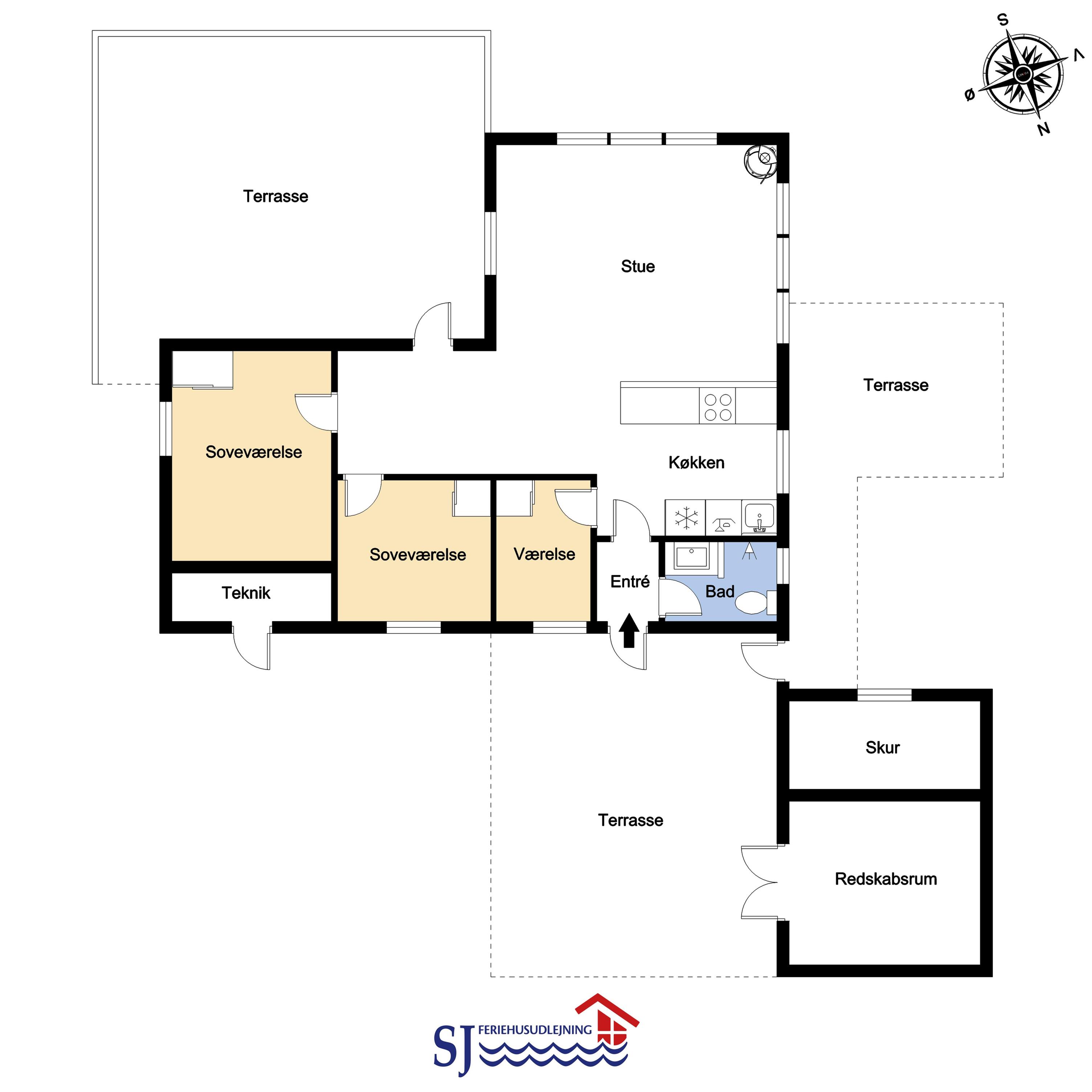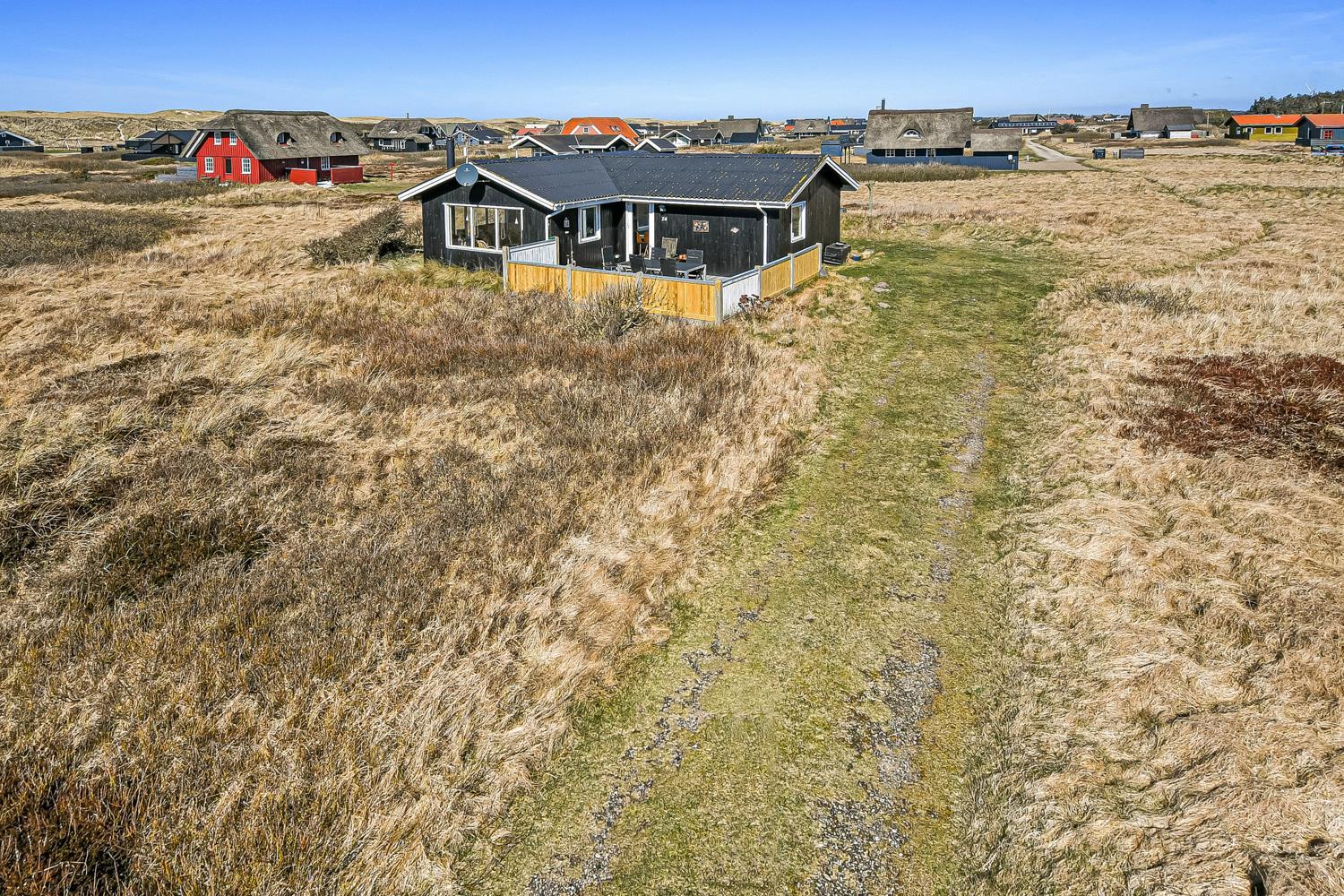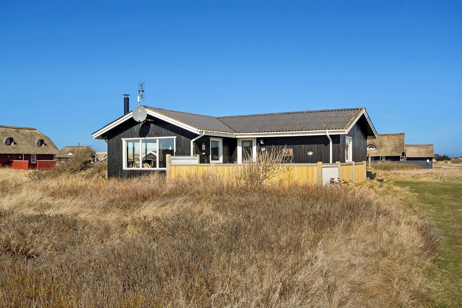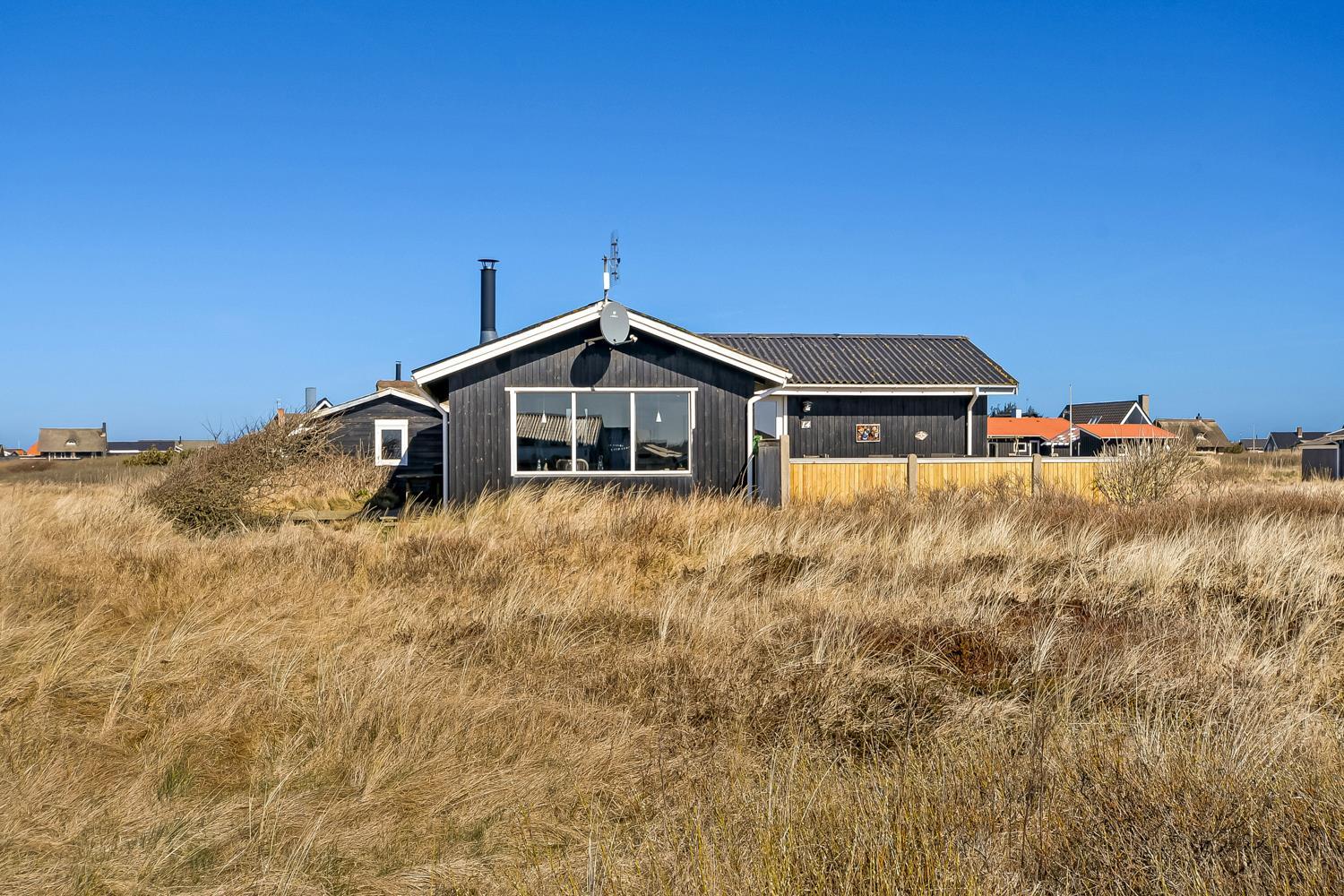Das Haus gehört seit Generationen zur Familie. Sie spüren sofort die ganz besondere Atmosphäre durch die sehr persönliche Einrichtung . Es gibt einen kombinierten Wohnraum mit Küchenecke, sowie einer gemütlichen Essecke mit Esstisch. Die Küche ist mit Herd mit Cerankochfeld, eingebautem Ofen, Mikrowelle, Geschirrspüler und Kühl-/Gefrierschrank ausgestattet. Der Wohnraum ist hell und freundlich und mit schönen Polstermöbeln eingerichtet. Es gibt TV mit Parabol mit dänischen und deutschen Programmen und einen fantastischen Blick zu den Dünen an der Nordsee. Für die kühlen Sommerabende oder einen Herbsttag mit Regen und Wind sorgt der Kaminofen für die Wärme und die gemütliche Stimmung. Es gibt ausserdem eine energiefreundliche Wärmepumpe im Wohnraum. 3 Schlafräume: 1DB + 1DB + 1E. Im Schlafraum mit Etagenbetten gibt es einen extra TV. Ein kleines Badezimmer mit Dusche, Toilette und Waschbecken. Ausserdem haben Sie auch eine Waschmaschine zu Verfügung.