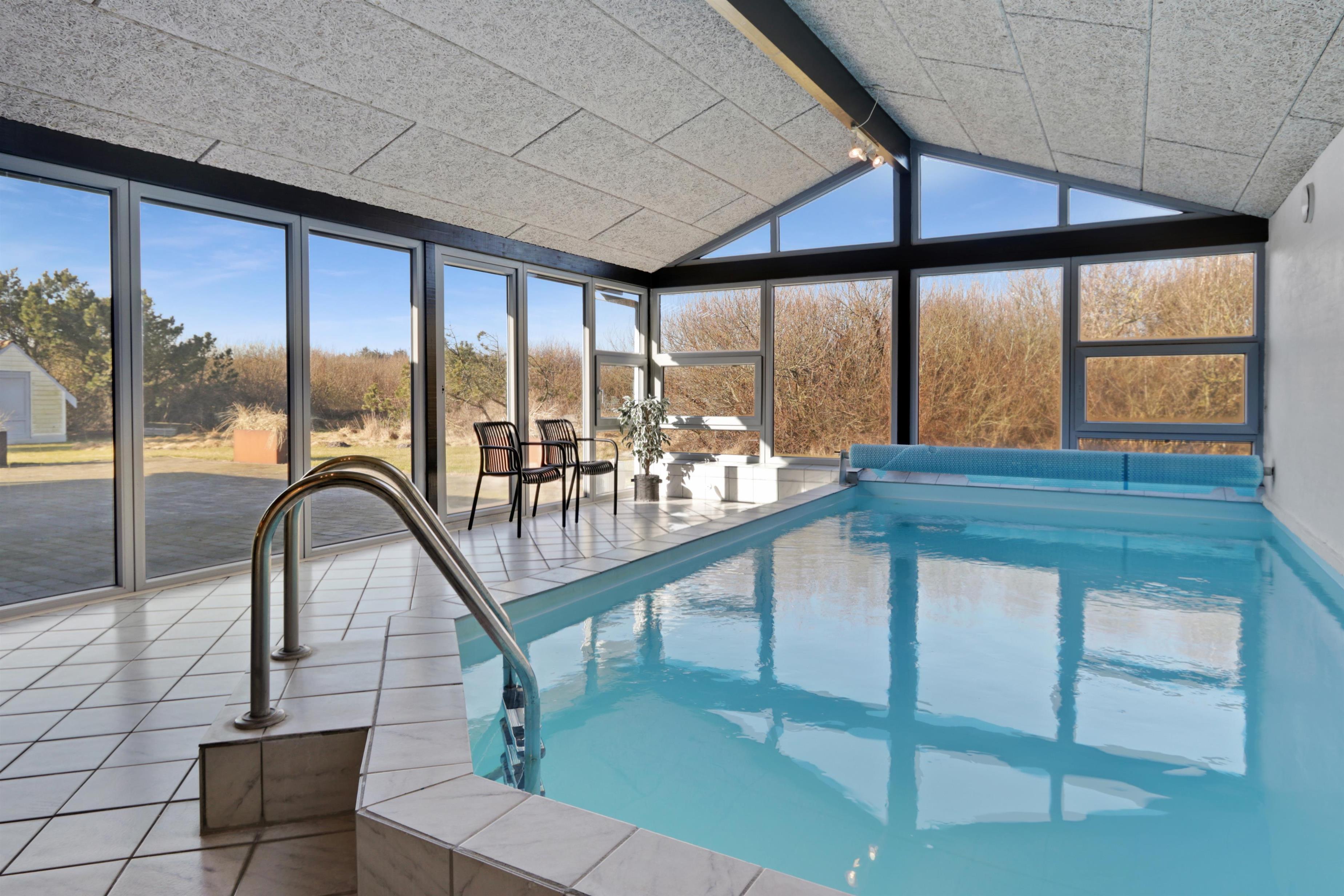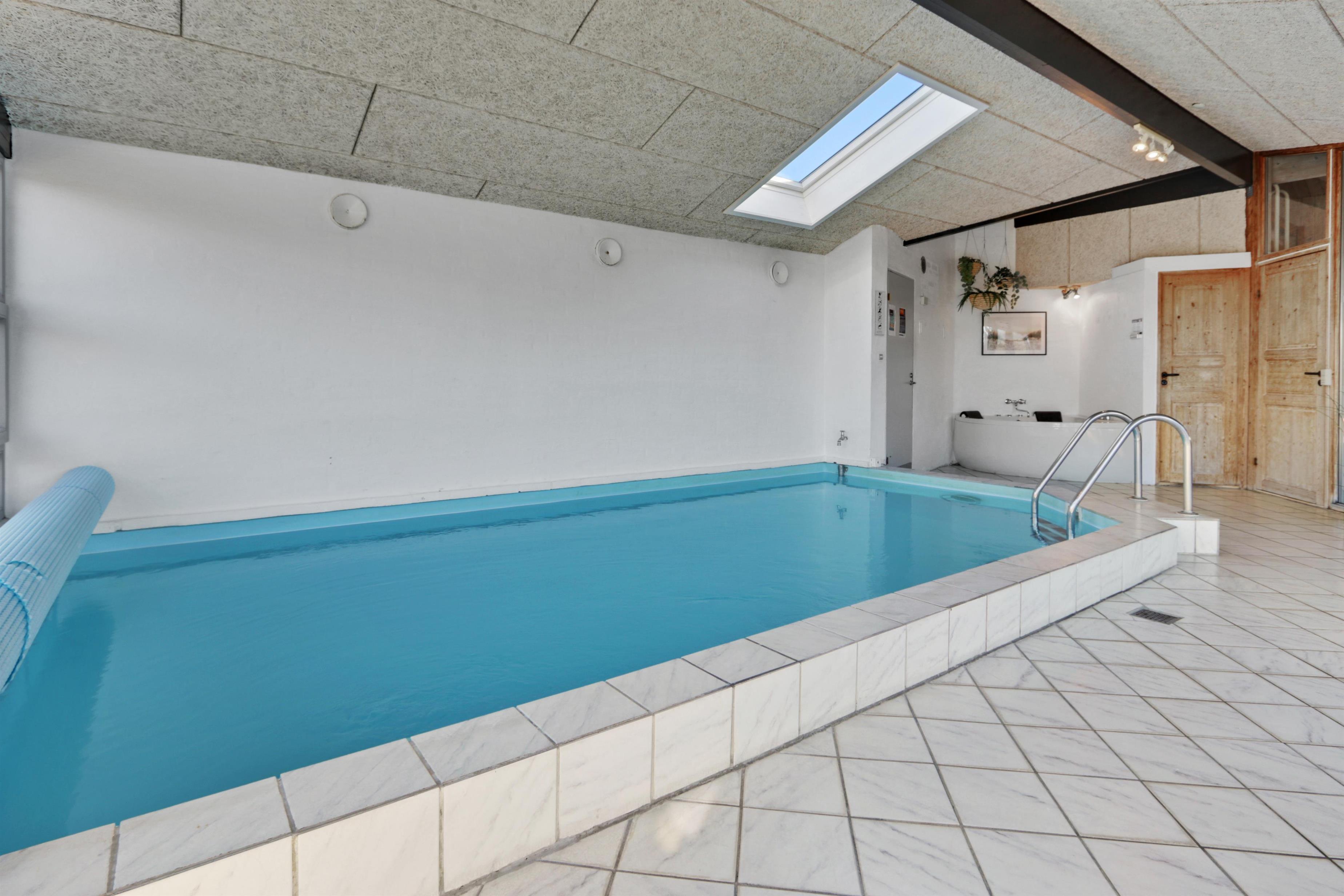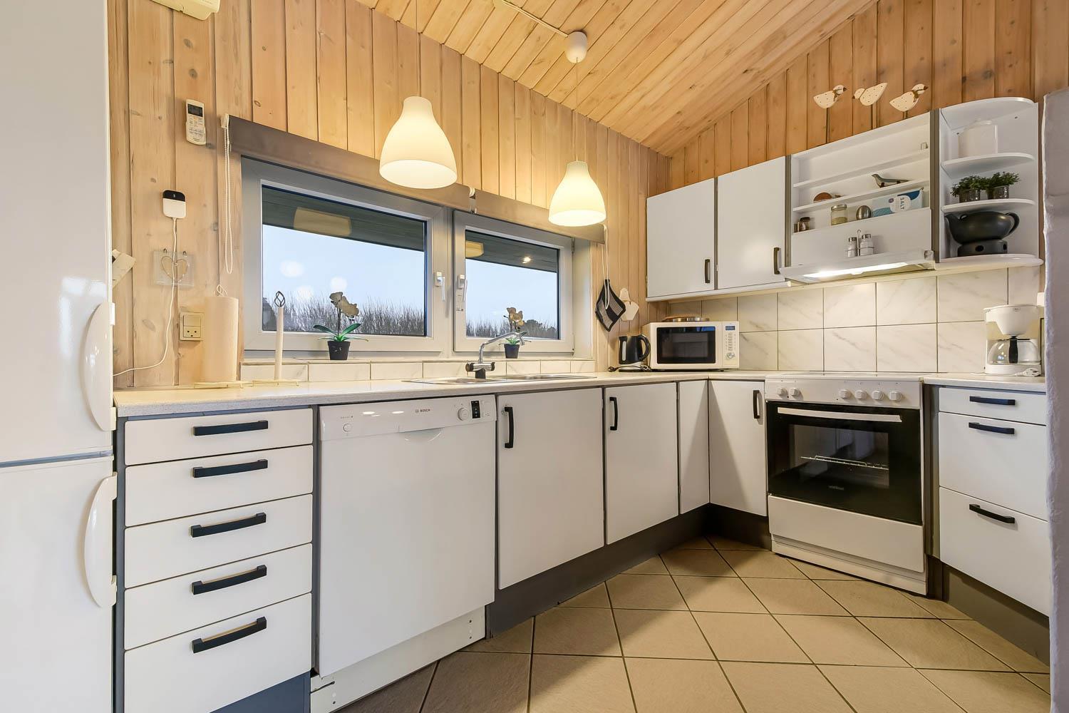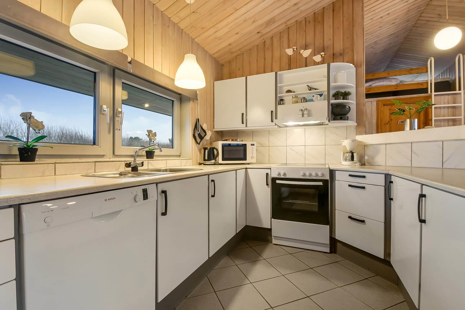 Die Küche des Hauses, die mit dem Wohnzimmer kombiniert ist, ist gut ausgestattet, unter anderem mit Geschirrspüler , Mikrowelle und Kühlschrank mit Gefrierfach. Das gemütliche Wohnzimmer ist mit komfortablen Möbeln, Kaminofen und Flachbildfernseher mit DR-Kanälen, Chromcast, Satellitenschüssel für die deutschen Kanäle und Stereoanlage ausgestattet. 4 gute Schlafzimmer, die mit 1DB+ 1DB + 2B + 2B und offenem Schlafboden mit 2 Schlafmöglichkeiten eingerichtet sind. In allen Zimmern können Doppel- und Einzelbetten hergestellt werden. Für die Kleinen gibt es ein Kinderbett und einen Hochstuhl. Das Haus verfügt über 2 Badezimmer, eines davon mit Toilette, Waschbecken, Dusche und Fußbodenheizung sowie Sauna. Die zweite ist auch mit Dusche und Fußbodenheizung und es gibt Platz für eine Wickelunterlage. Der schöner Poolraum hat Panoramafenster zu 3 Seiten, die ein schönes Licht bieten. Neben dem Pool gibt es einen Whirlpool. Im Haus ist eine Luft-Wasser-Wärmepumpe installiert, über die der Pool beheizt wird. Energifreundliches Haus. Das Haus ist natürlich auch mit Waschmaschine und Trockner ausgestattet. Wenn Sie ein Elektroauto oder einen Plug-in-Hybrid haben, verfügt das Haus über eine Ladegerät, Type 2 die bis zu 11 kWh aufladen kann. Kaution Wintersaison EUR 600 und Sommersaison EUR 300.