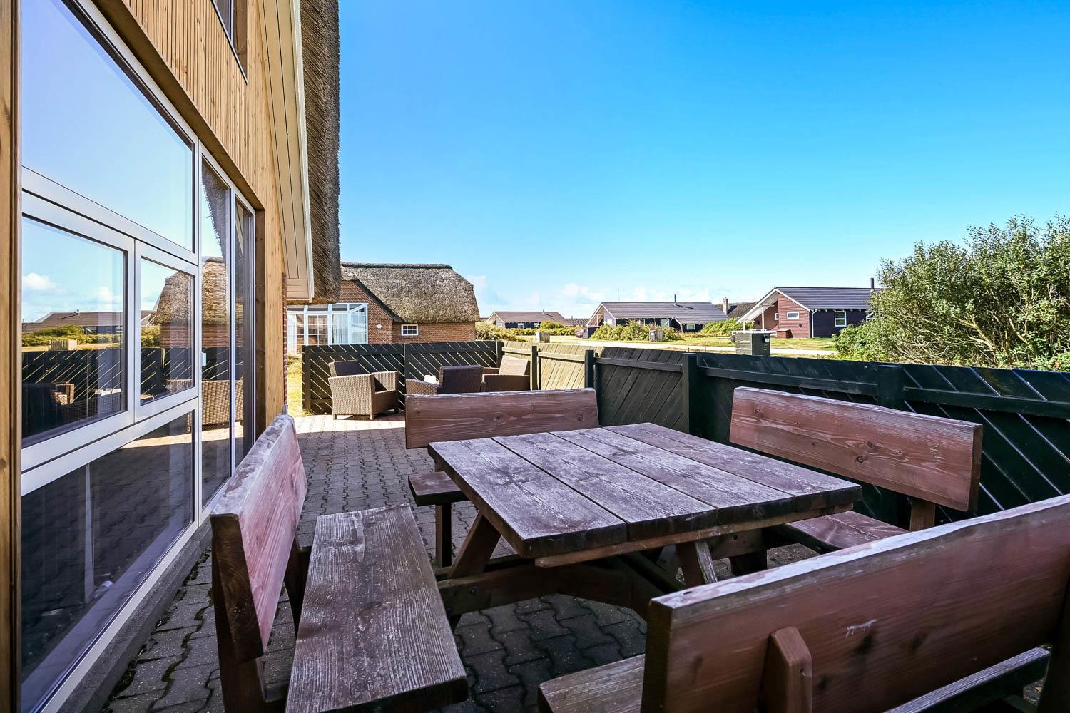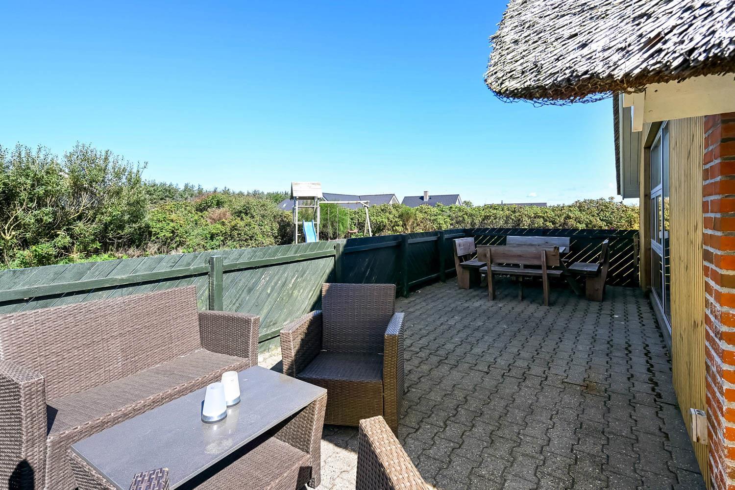 Das Haus liegt auf einem 1.200 m² großen Naturgrundstück, nur 300 Meter von der Nordsee entfernt. Zwei teilweise geschlossene Terrassen mit Gartenmöbeln, Grill und Sonnenliegen laden dazu ein, entweder ein windgeschütztes Plätzchen oder einen sonnigen Platz zu finden.