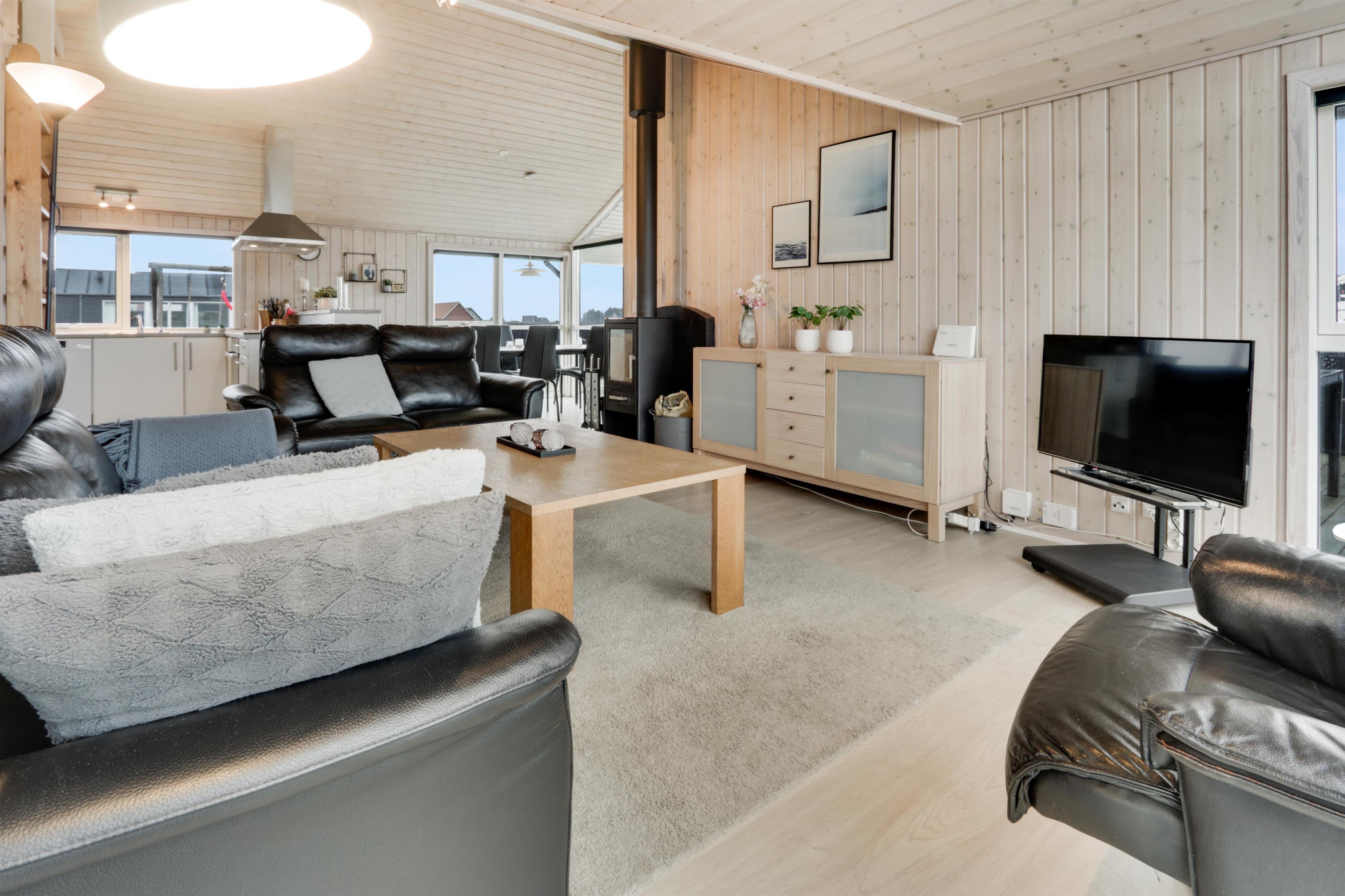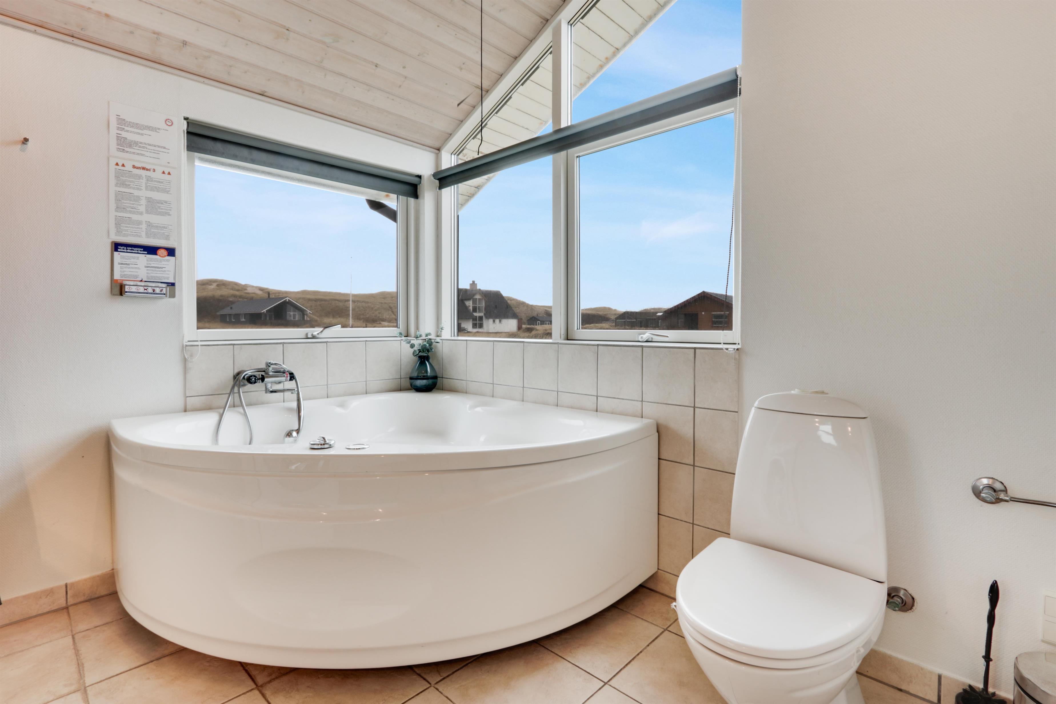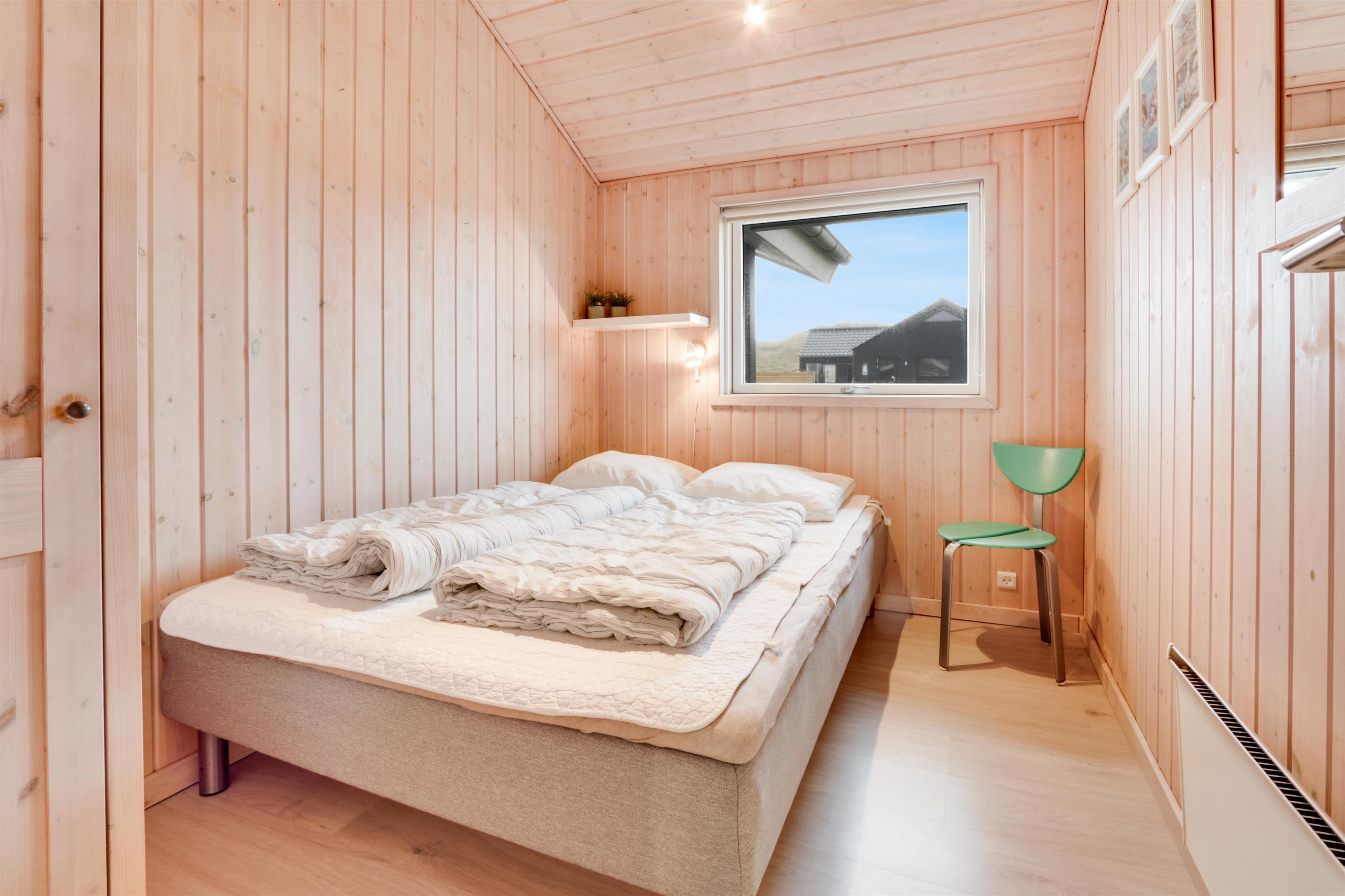 Schönes Ferienhaus aus Holz auf einem Dünengrundstück dicht an der Nordsee gelegen. Das Haus ist hell und freundlich eingerichtet mit Holzboden, die Wände sind durch hohe Decke geöffnet und es gibt große Panoramafenster. Schöner Wohnraum mit Ledermöbeln, F-TV mit dänischen und deutschen Programmen und die Möglichkeit für Streaming von TV / Radio / Apps für die Sie selber einen Abonnement haben. Ein Kaminofen und eine Wärmepumpe sorgen beide für eine schöne Wärme und helfen auch dabei eine günstigere Nebenkostenrechnung zu bekommen. An dem einen Ende vom Wohnraum steht der Esstisch, von dem Sie einen schönen Blick über die Gegend haben. Die Küche ist modern eingerichtet mit E-Herd, Kühl-/Gefrierschrank, Geschirrspüler und Mikrowelle. Schönes großes Badezimmer mit Toilette, Waschbecken, Dusche, Whirlpool und Zugang zur Sauna und Fliesenboden mit Fußbodenheizung. 3 gute Schlafräume, jeweils mit 1 DB. Vom Wohnraum gibt es eine steile Leiter zum offenen Schlafboden mit 2 Schlafmöglichkeiten. Waschmaschine. Nichtraucher-Haus. 1 Haustier ist erlaubt.