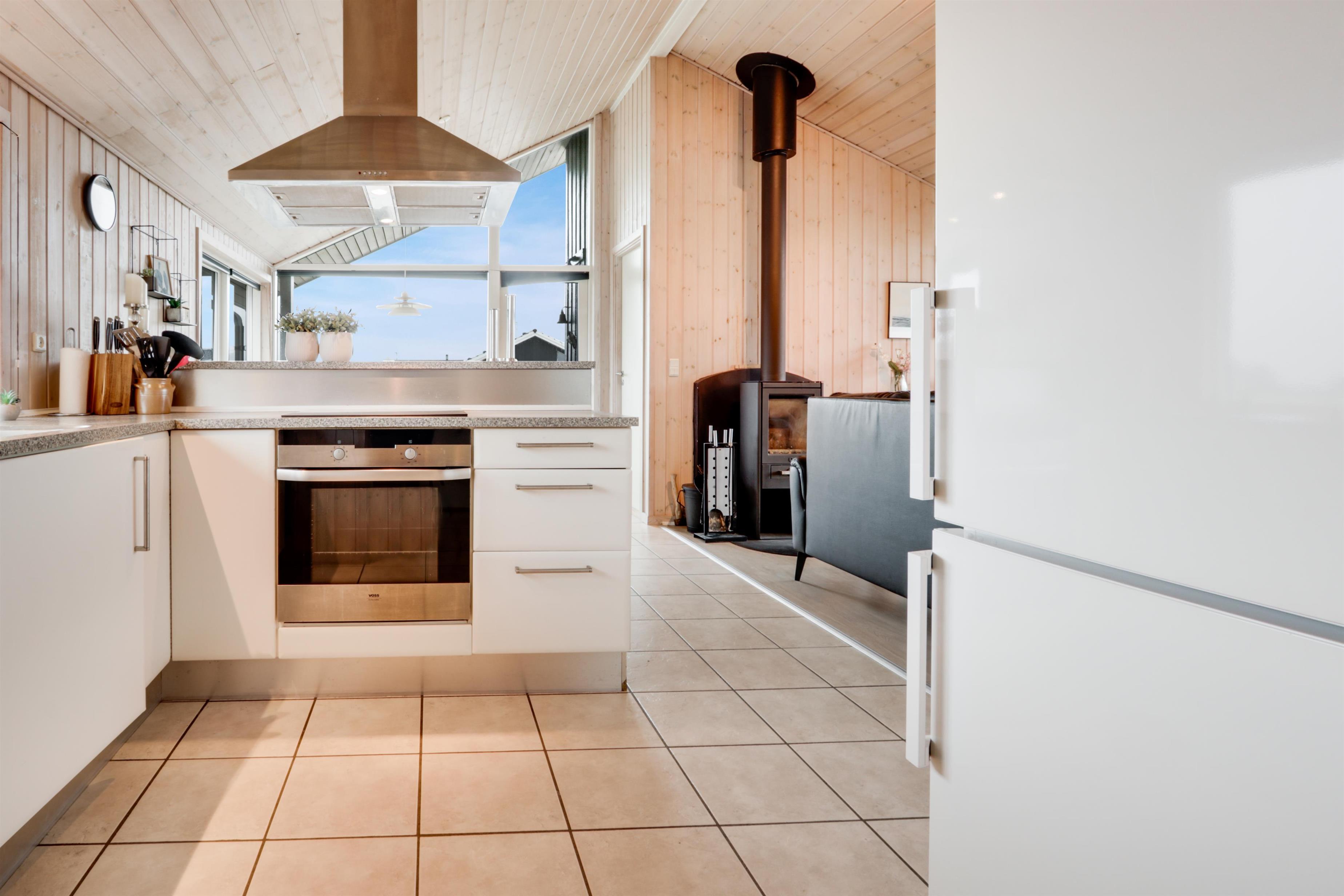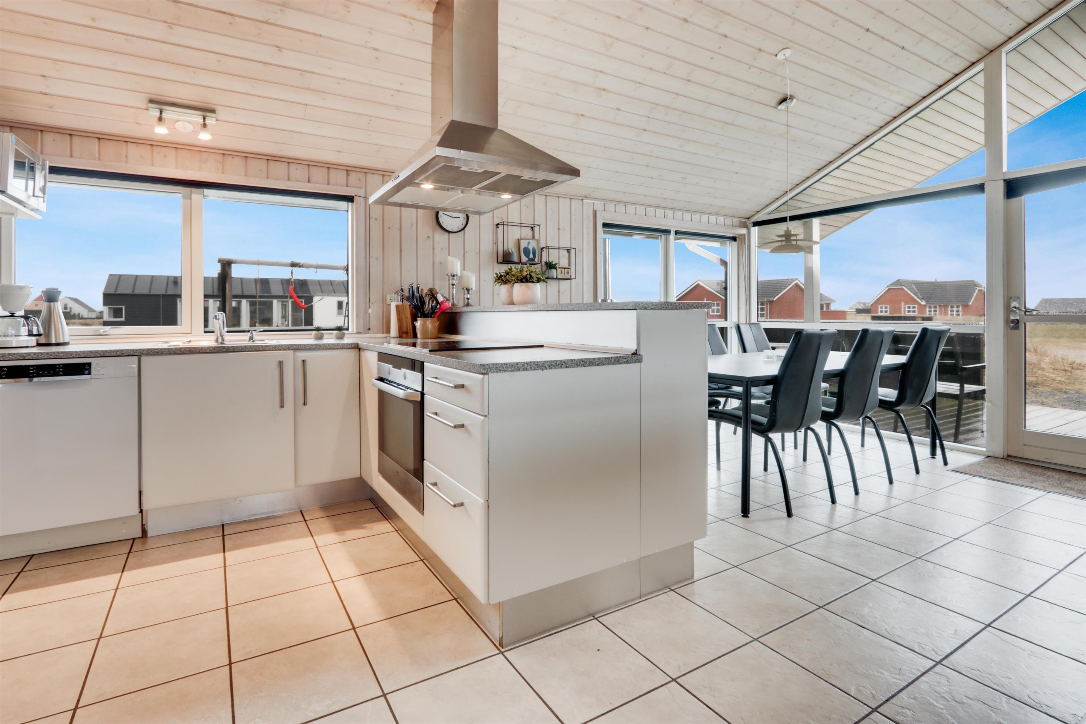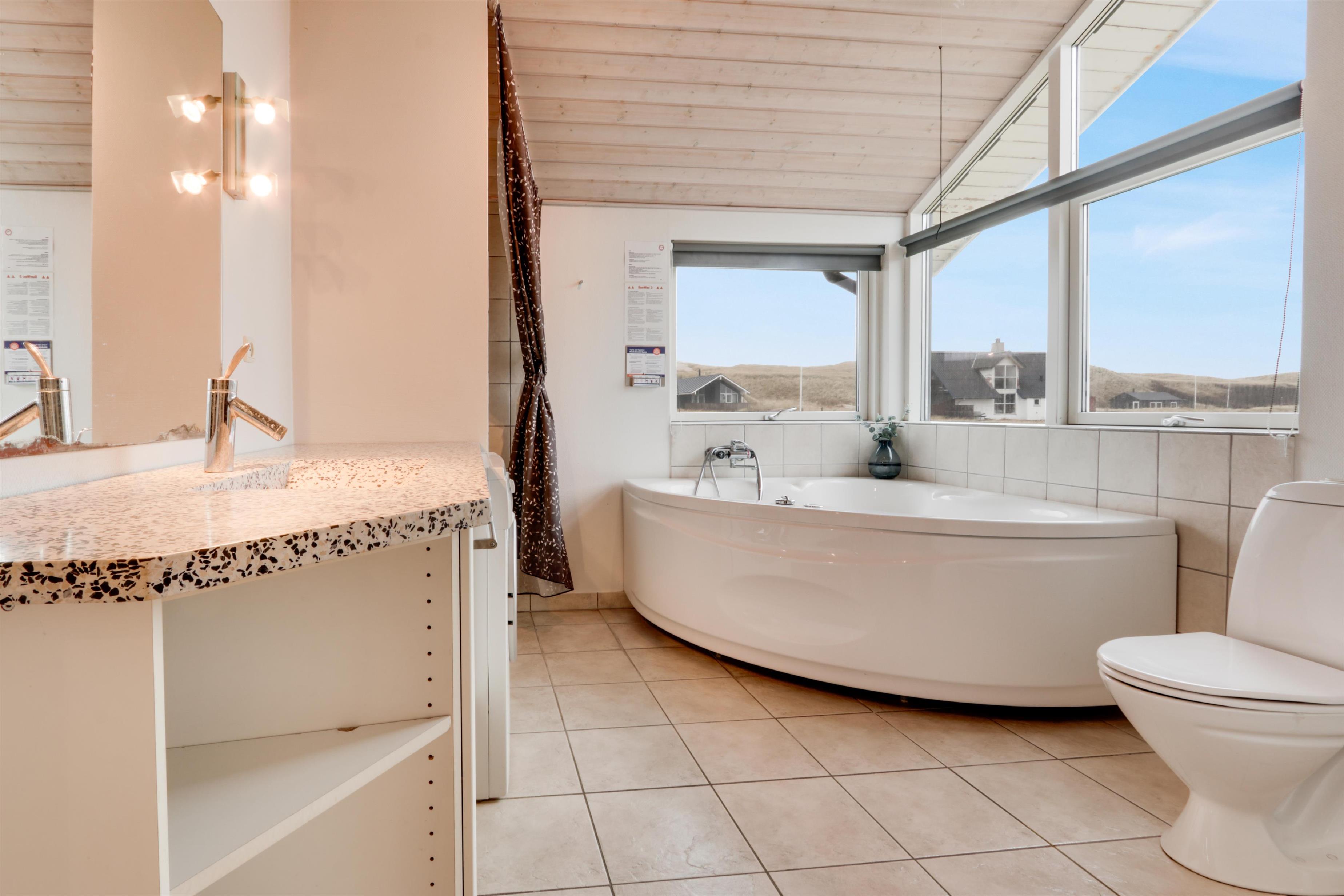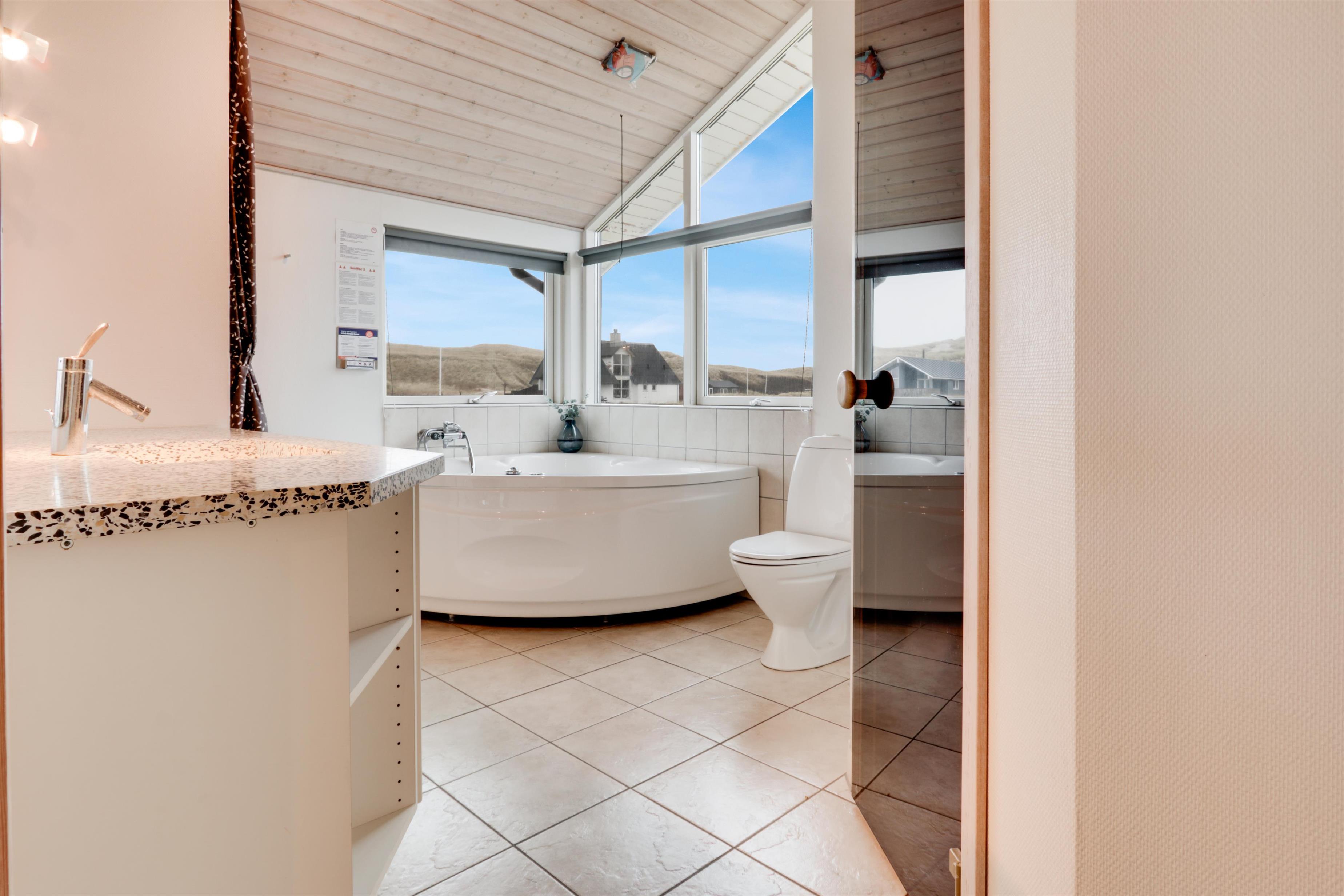 Schönes Ferienhaus aus Holz auf einem Dünengrundstück dicht an der Nordsee gelegen. Das Haus ist hell und freundlich eingerichtet mit Holzboden, die Wände sind durch hohe Decke geöffnet und es gibt große Panoramafenster. Schöner Wohnraum mit Ledermöbeln, F-TV mit dänischen und deutschen Programmen und die Möglichkeit für Streaming von TV / Radio / Apps für die Sie selber einen Abonnement haben. Ein Kaminofen und eine Wärmepumpe sorgen beide für eine schöne Wärme und helfen auch dabei eine günstigere Nebenkostenrechnung zu bekommen. An dem einen Ende vom Wohnraum steht der Esstisch, von dem Sie einen schönen Blick über die Gegend haben. Die Küche ist modern eingerichtet mit E-Herd, Kühl-/Gefrierschrank, Geschirrspüler und Mikrowelle. Schönes großes Badezimmer mit Toilette, Waschbecken, Dusche, Whirlpool und Zugang zur Sauna und Fliesenboden mit Fußbodenheizung. 3 gute Schlafräume, jeweils mit 1 DB. Vom Wohnraum gibt es eine steile Leiter zum offenen Schlafboden mit 2 Schlafmöglichkeiten. Waschmaschine. Nichtraucher-Haus. 1 Haustier ist erlaubt.